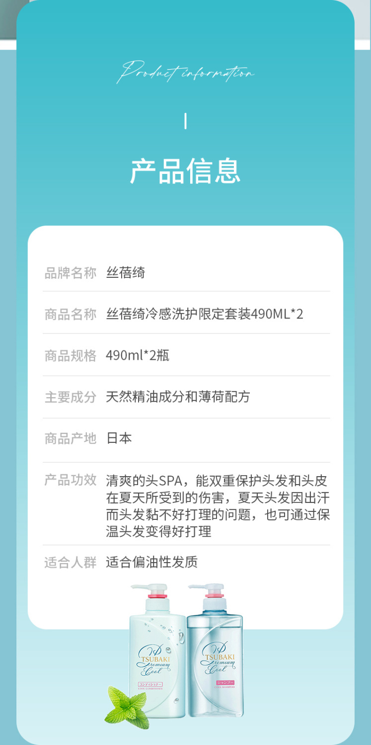 【预售 急单慎拍】TSUBAKI丝蓓绮冷感洗护发套装490ml*2蓬松清爽去油