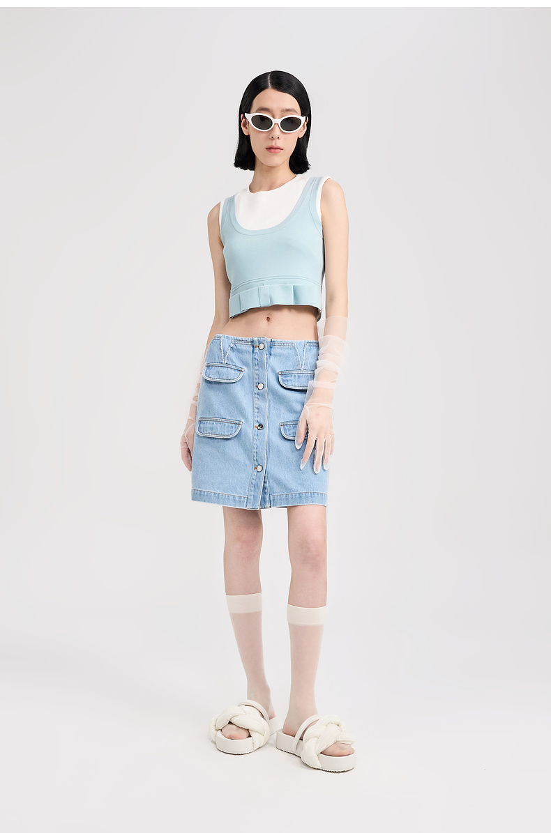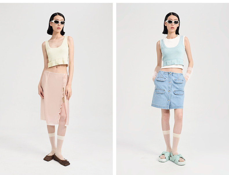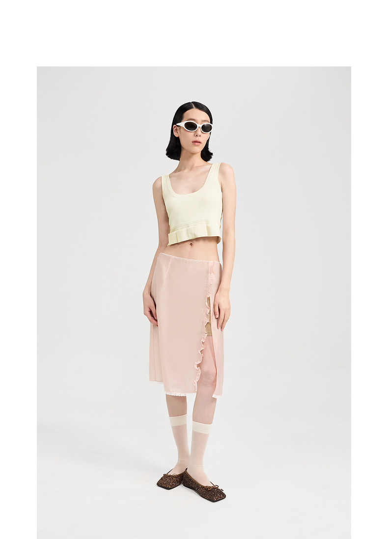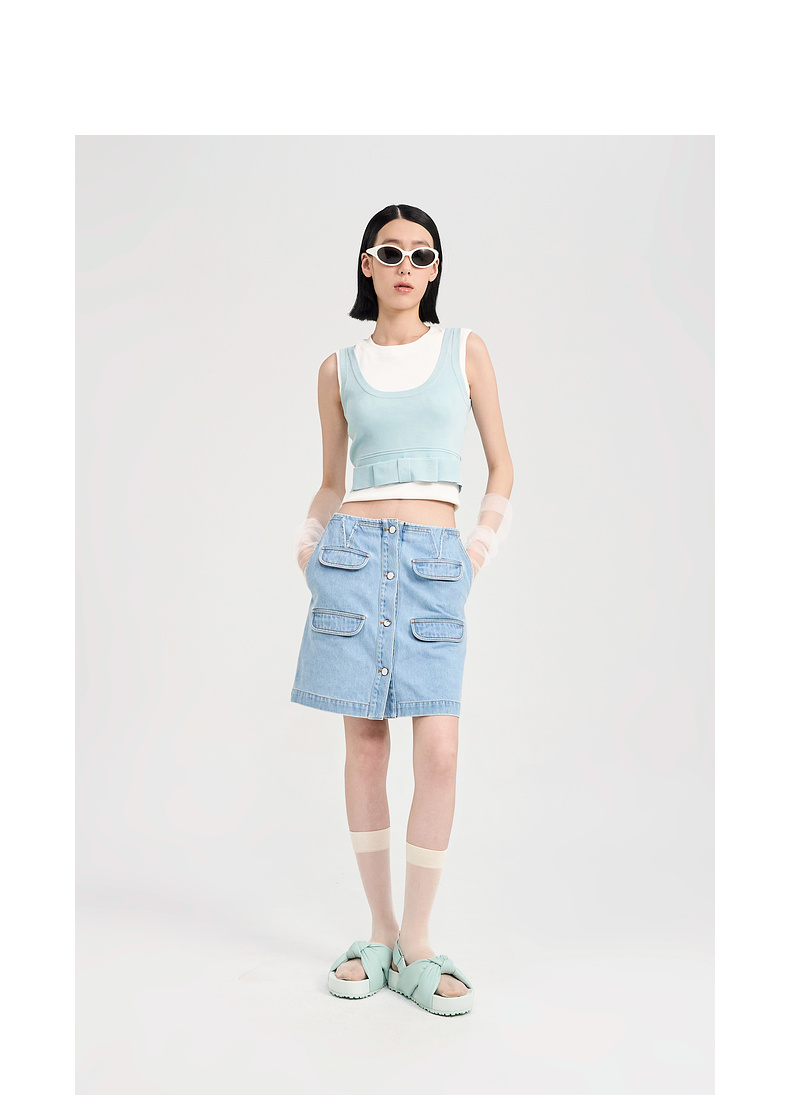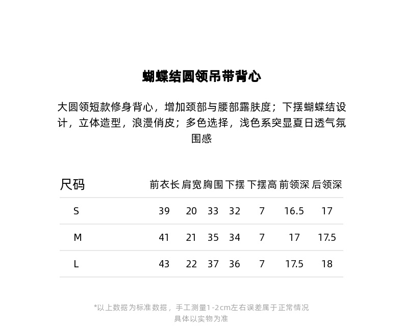 lost in echo2024夏季新款休闲蝴蝶结大圆领短款修身吊带背心女