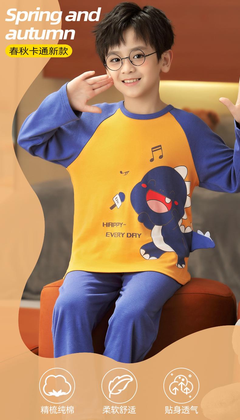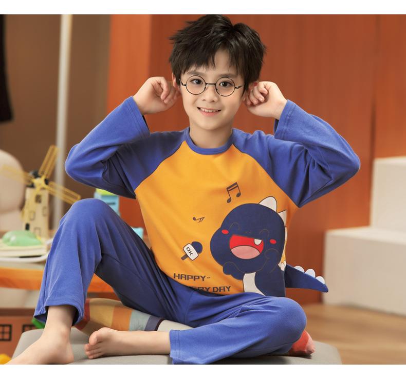 男童睡衣2022新款纯棉薄款中大童男孩长袖套装秋季休闲儿童家居服
