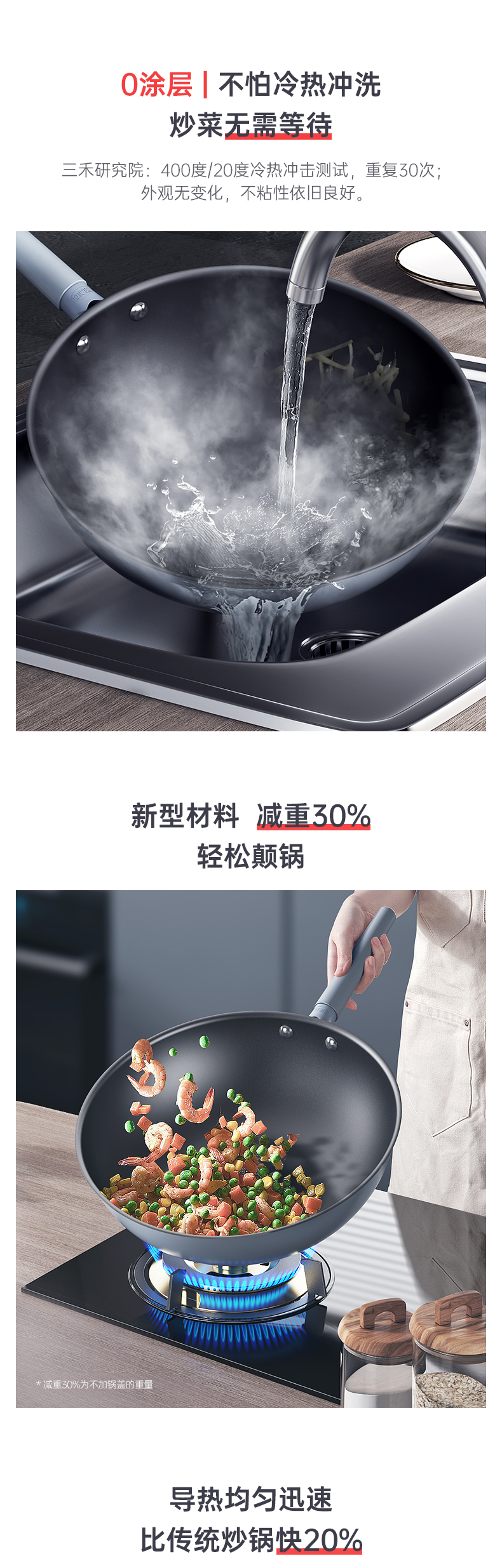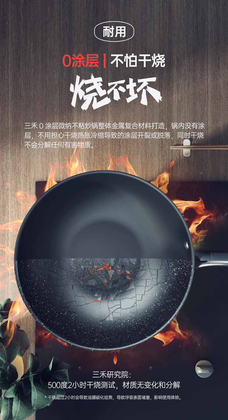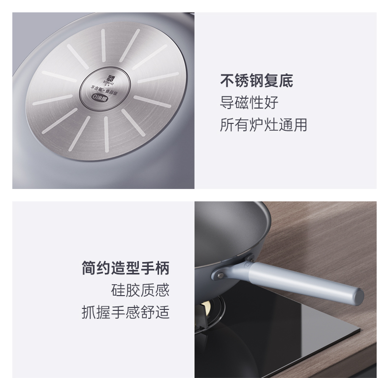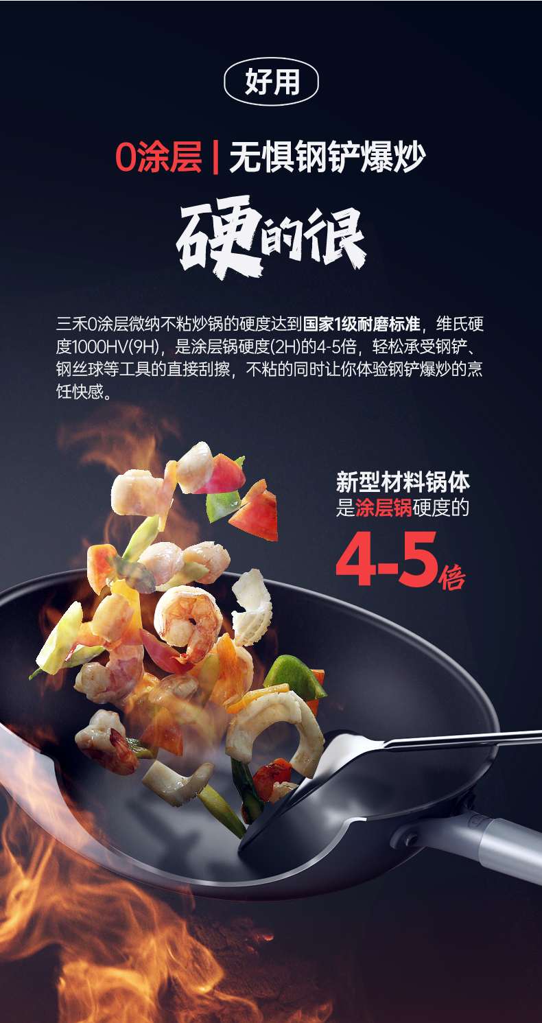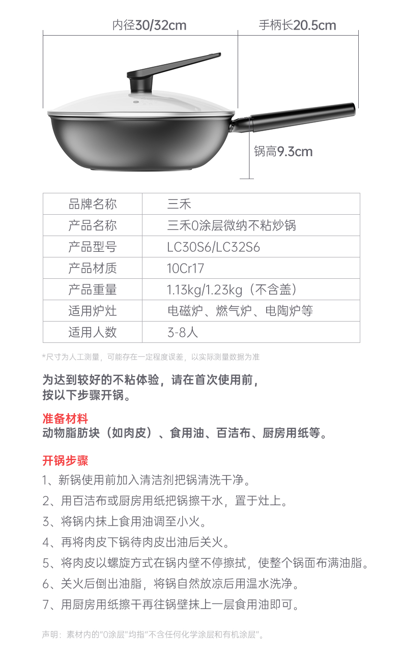 三禾0涂层不粘炒锅 可立锅盖