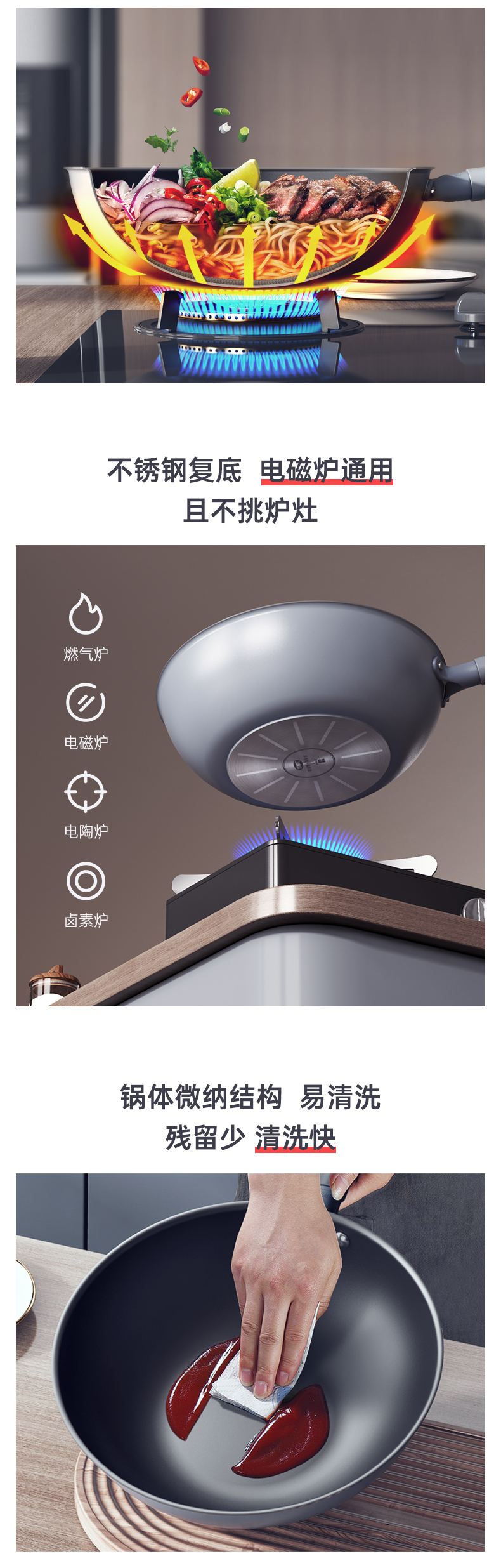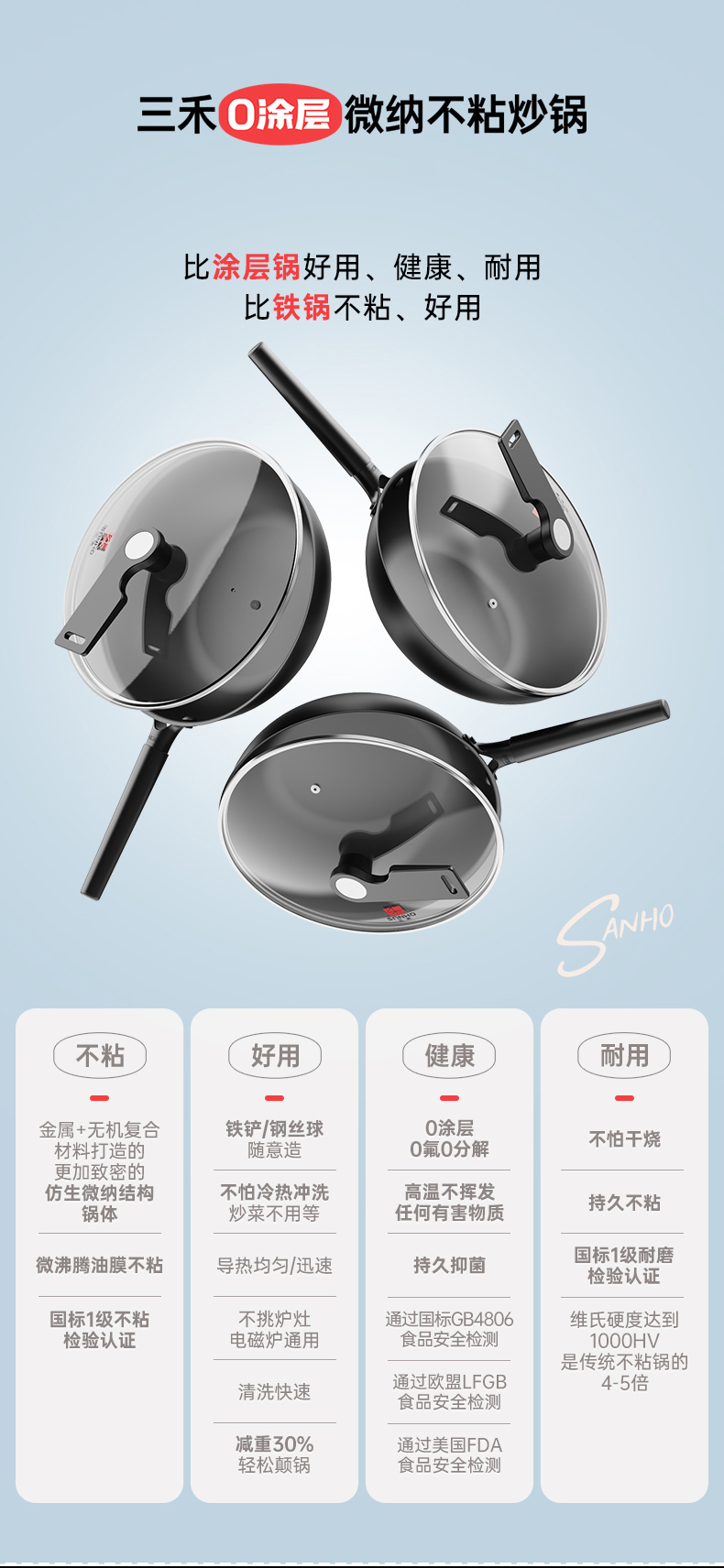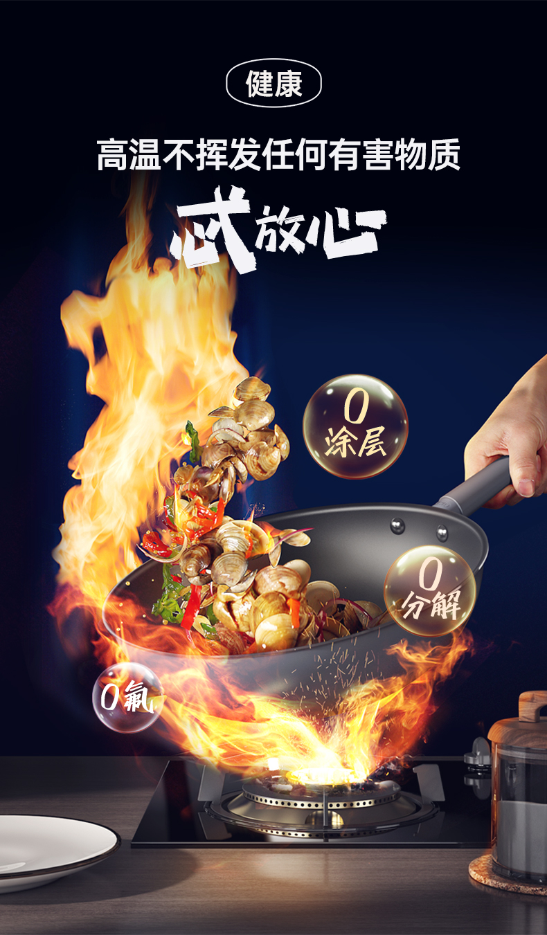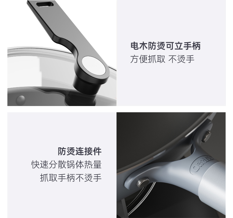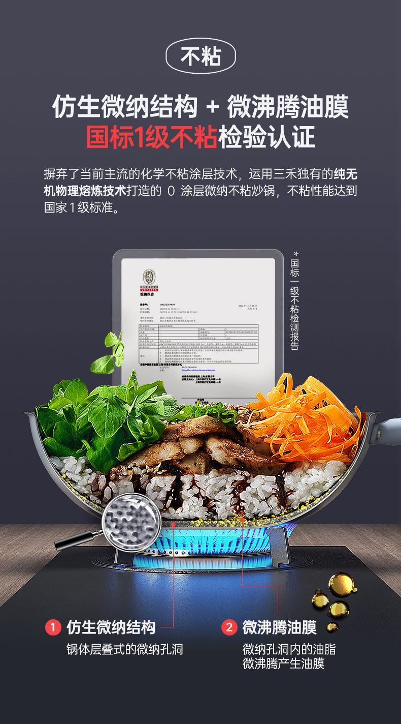 三禾0涂层不粘炒锅 可立锅盖