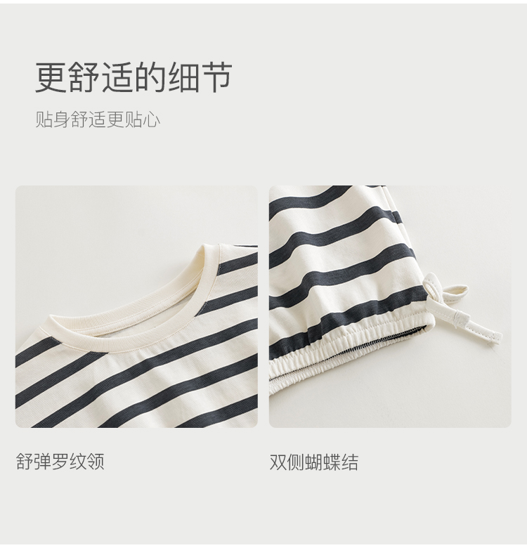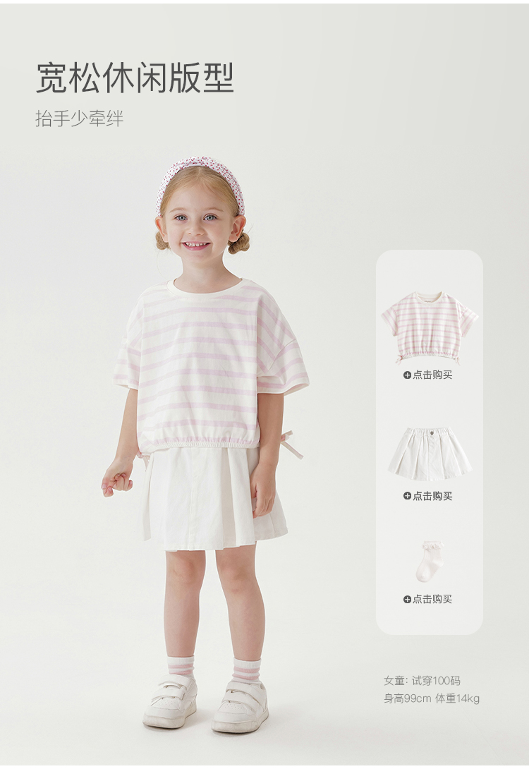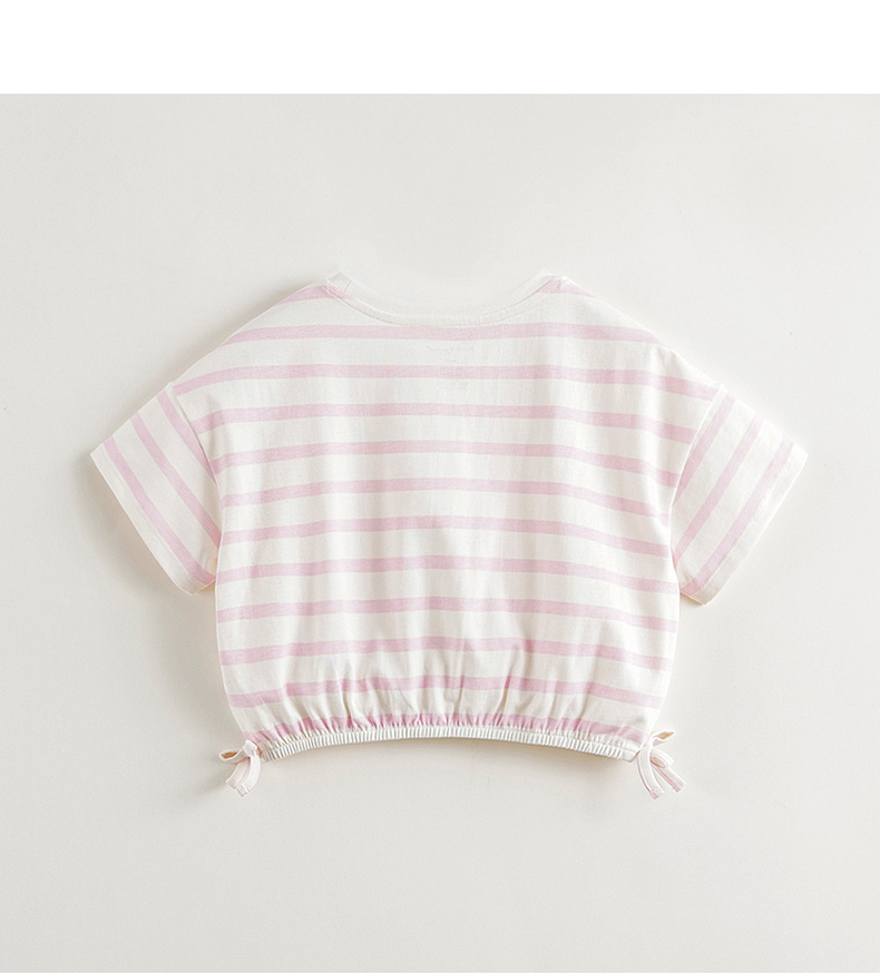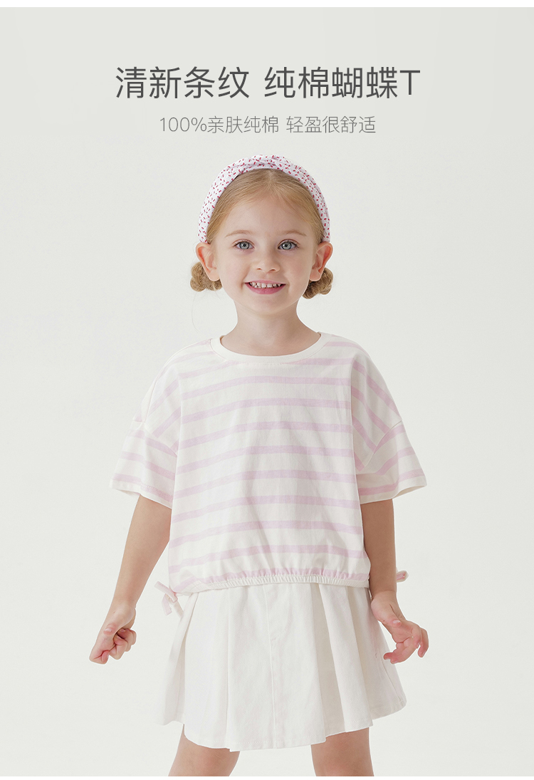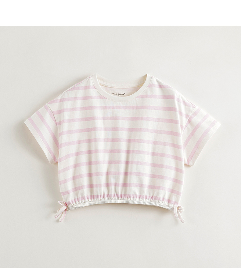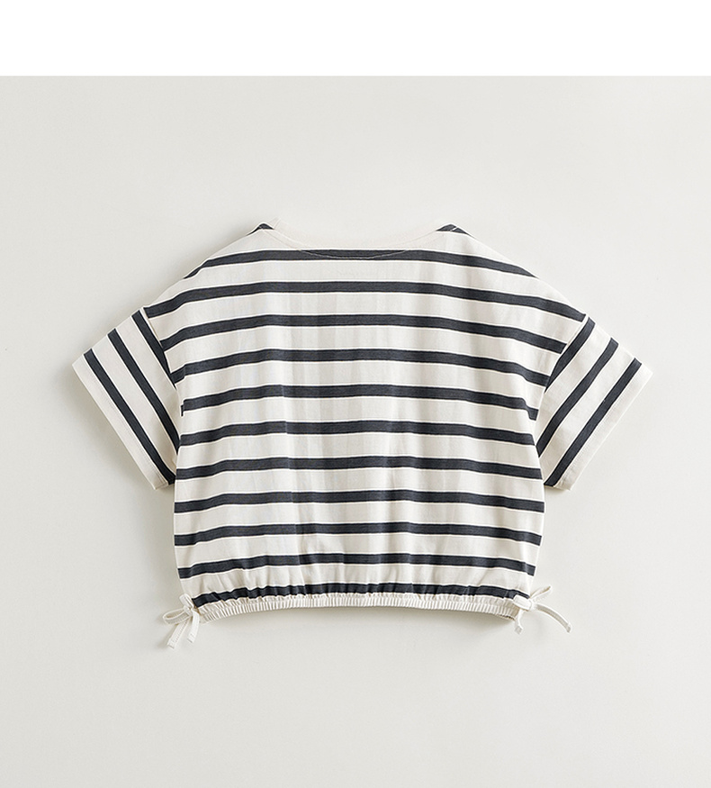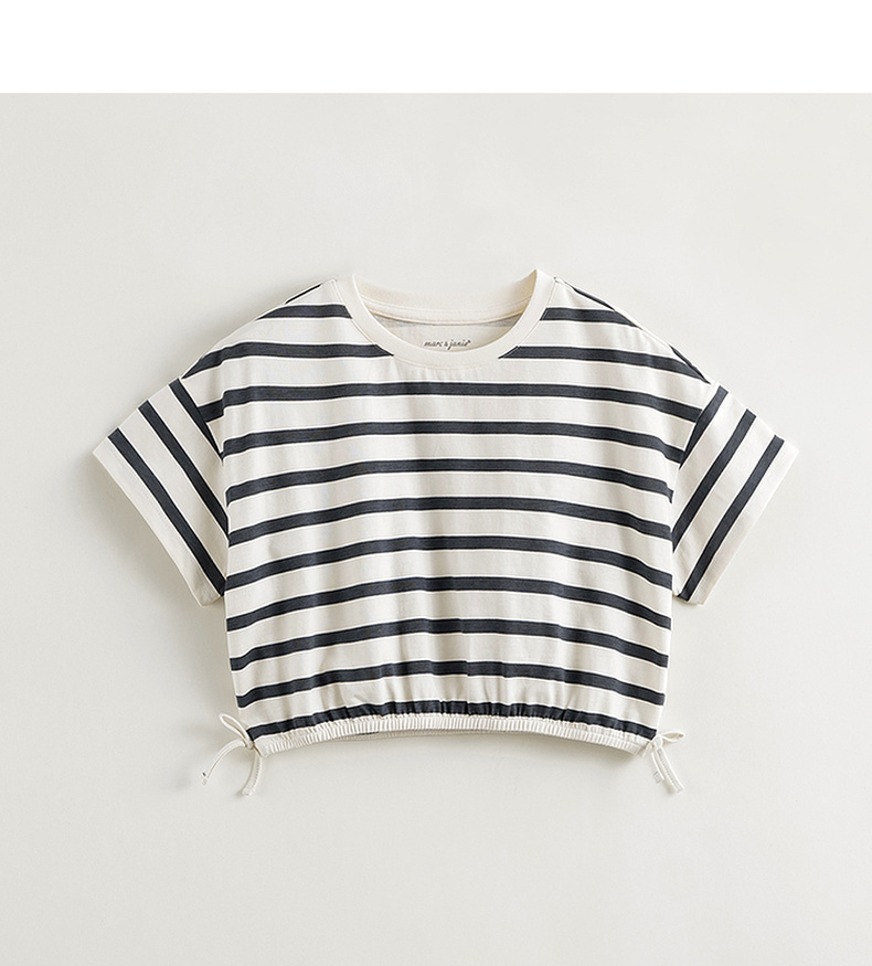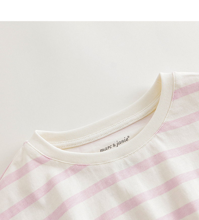 马克珍妮2024年夏装新款女童宽松纯棉条纹短袖T恤240785