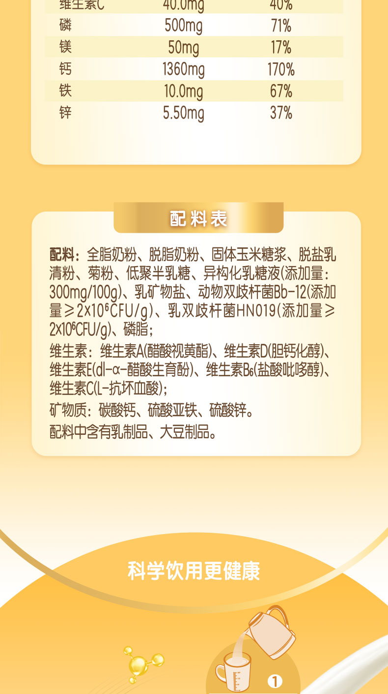 伊利全脂400G甜营养奶粉