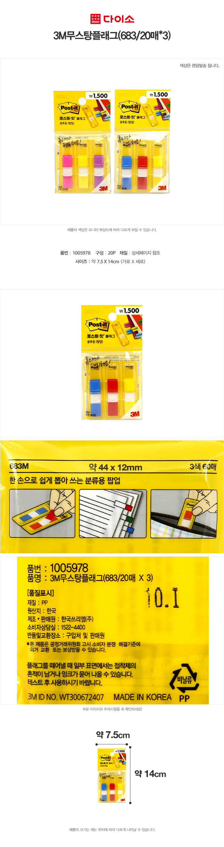[Daiso] 3M Mustang Flag [大创] 3M便利书签/20张* 3-1005978JPY带授权招加盟代理