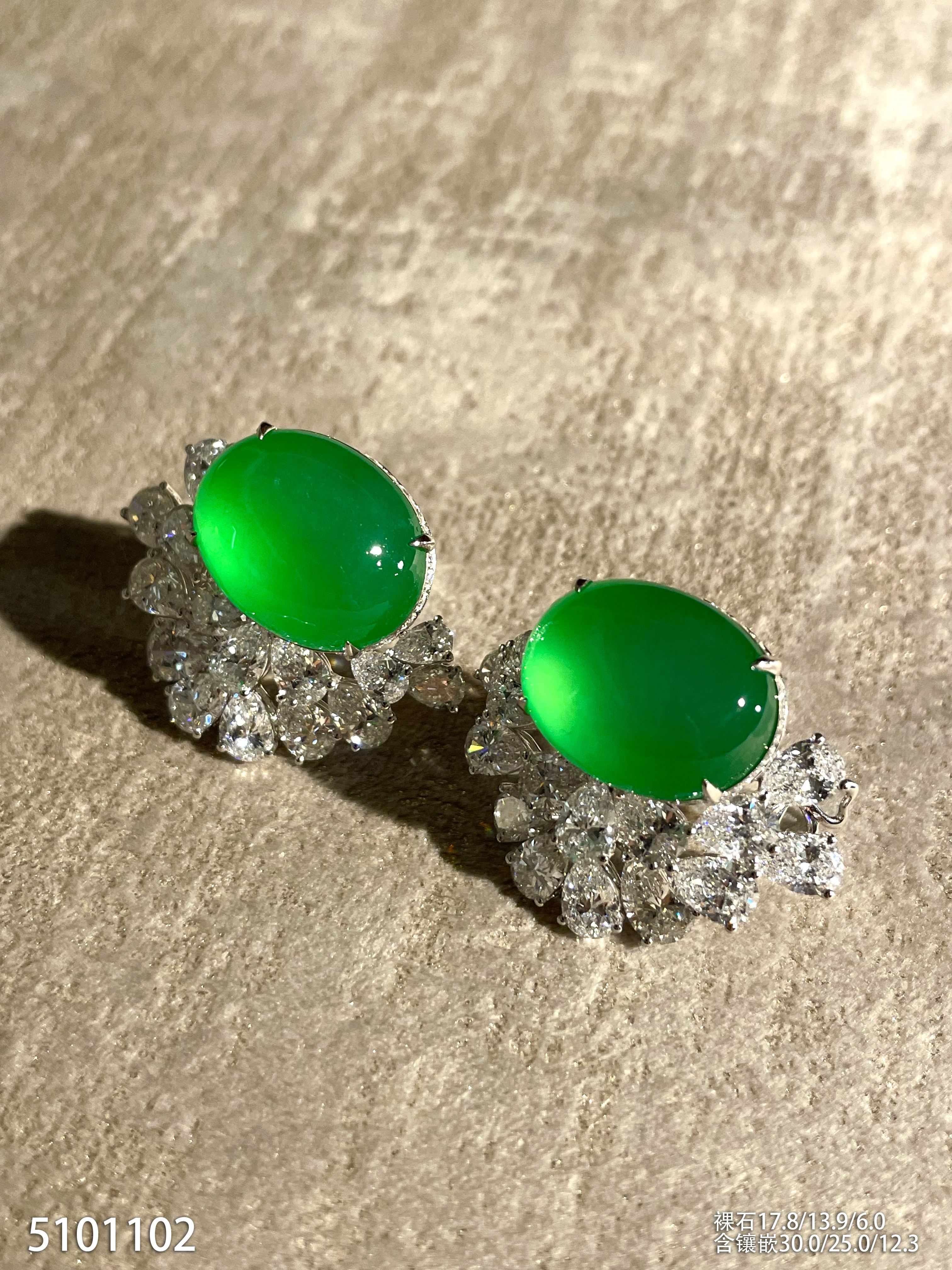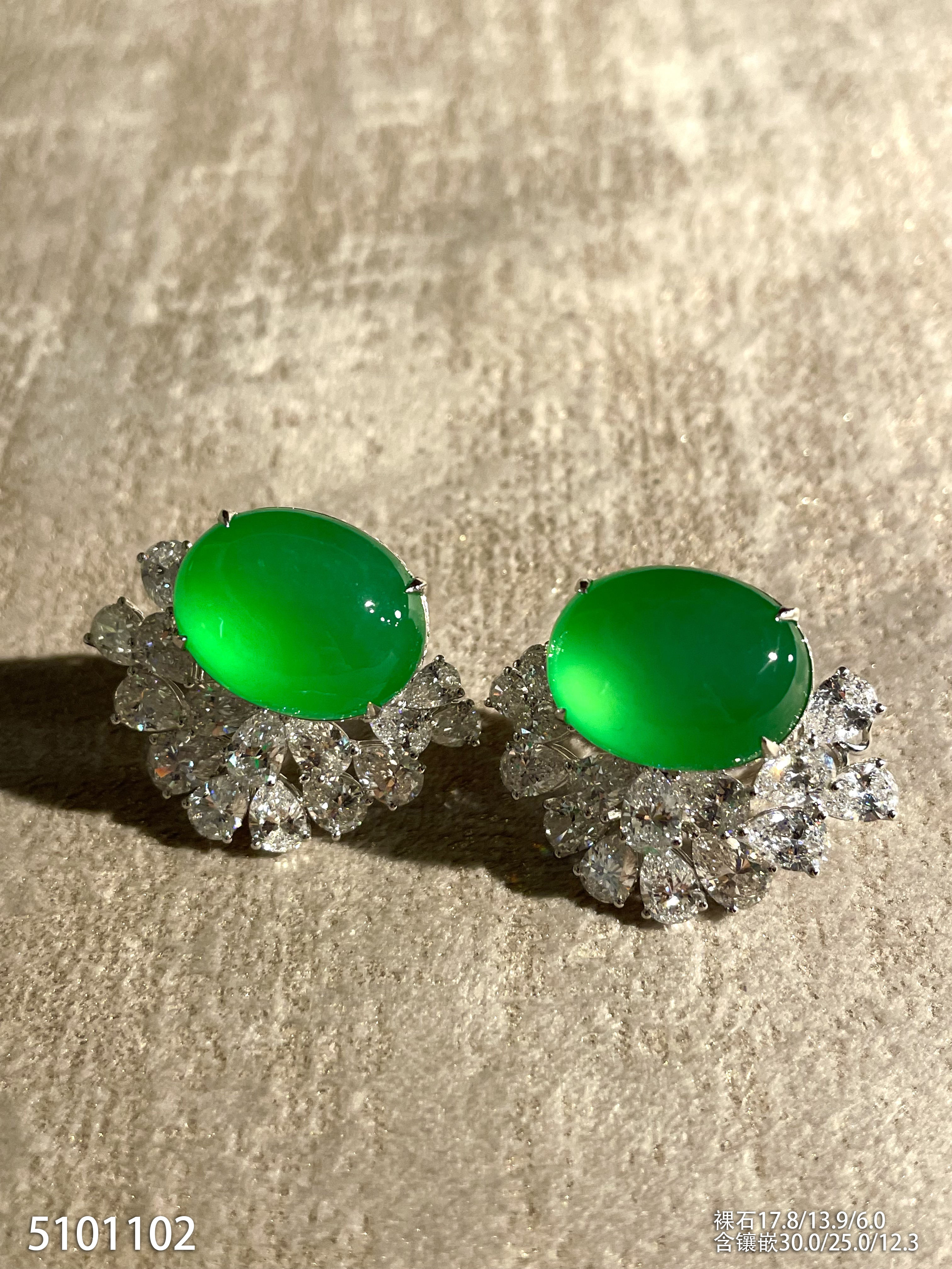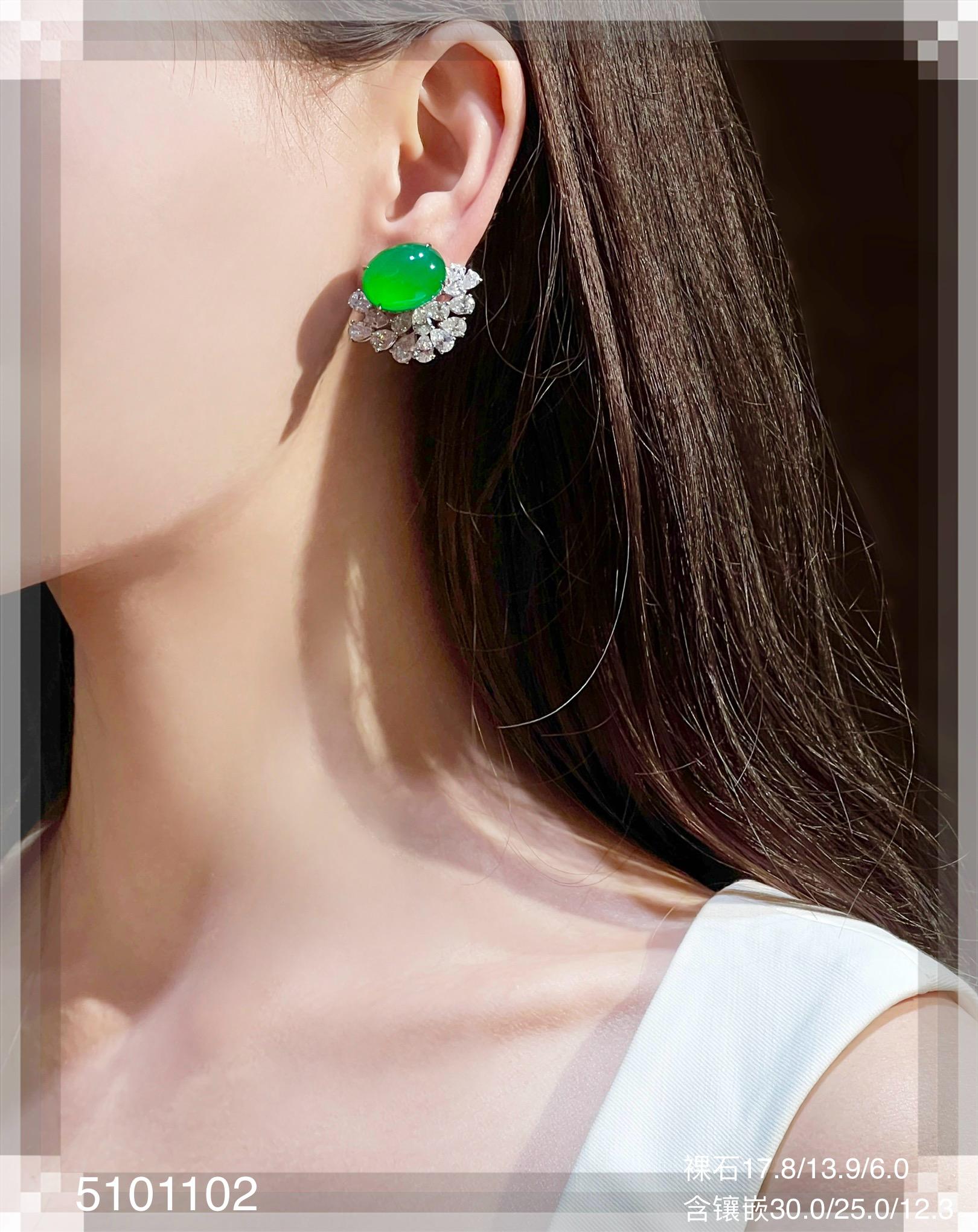 玻璃种阳艳绿蛋面耳钉【5101102】具体价格微信咨询