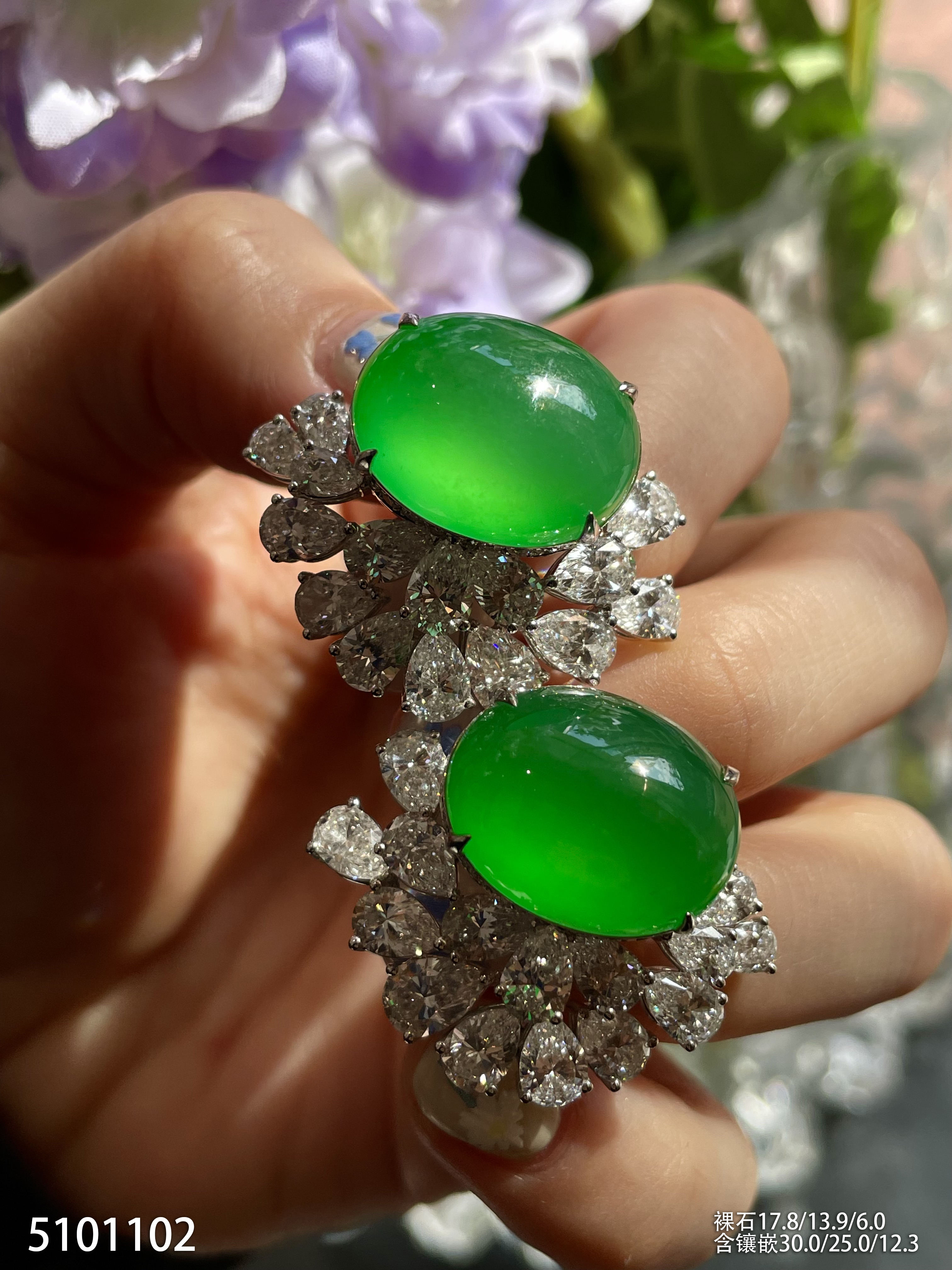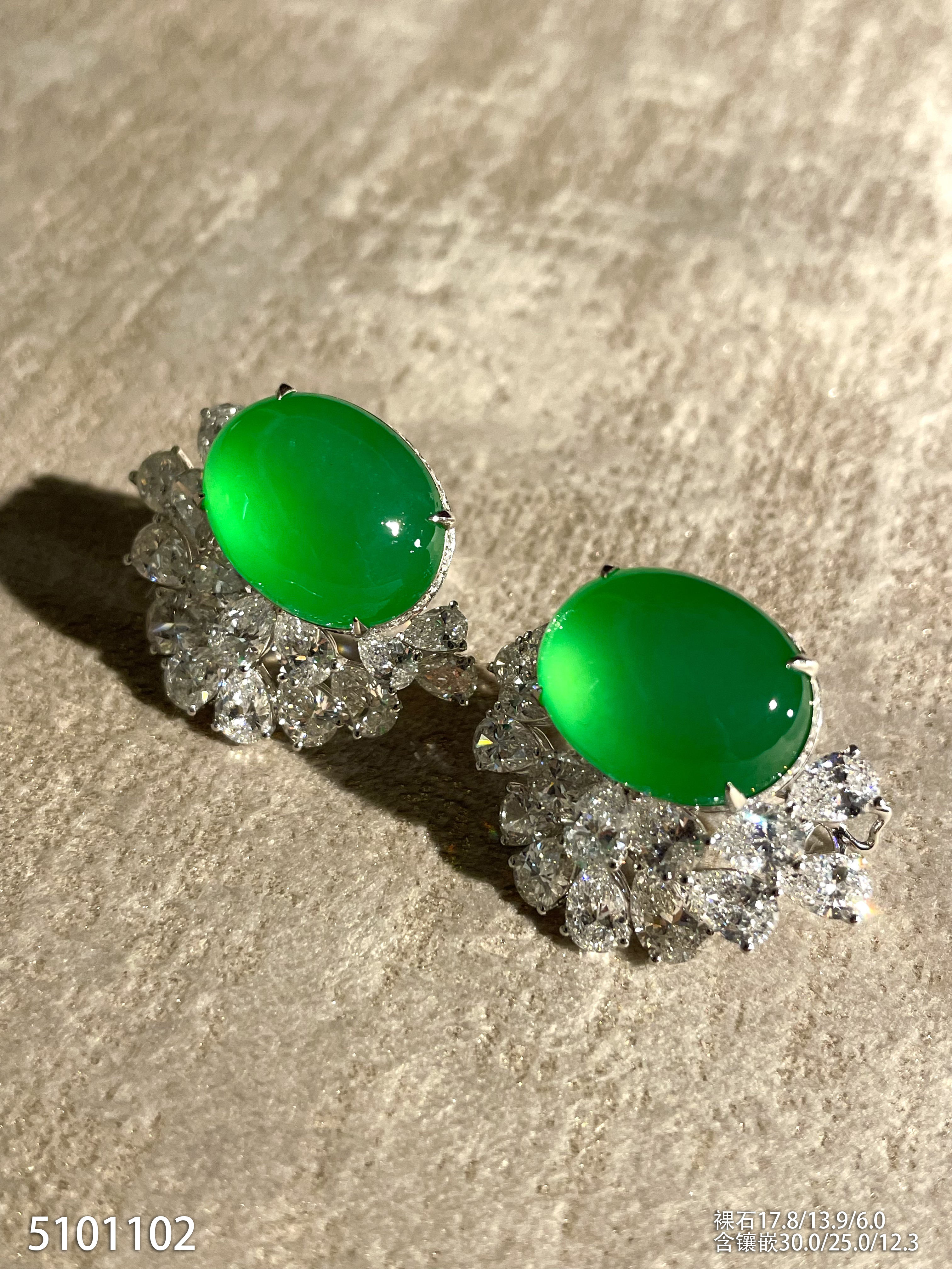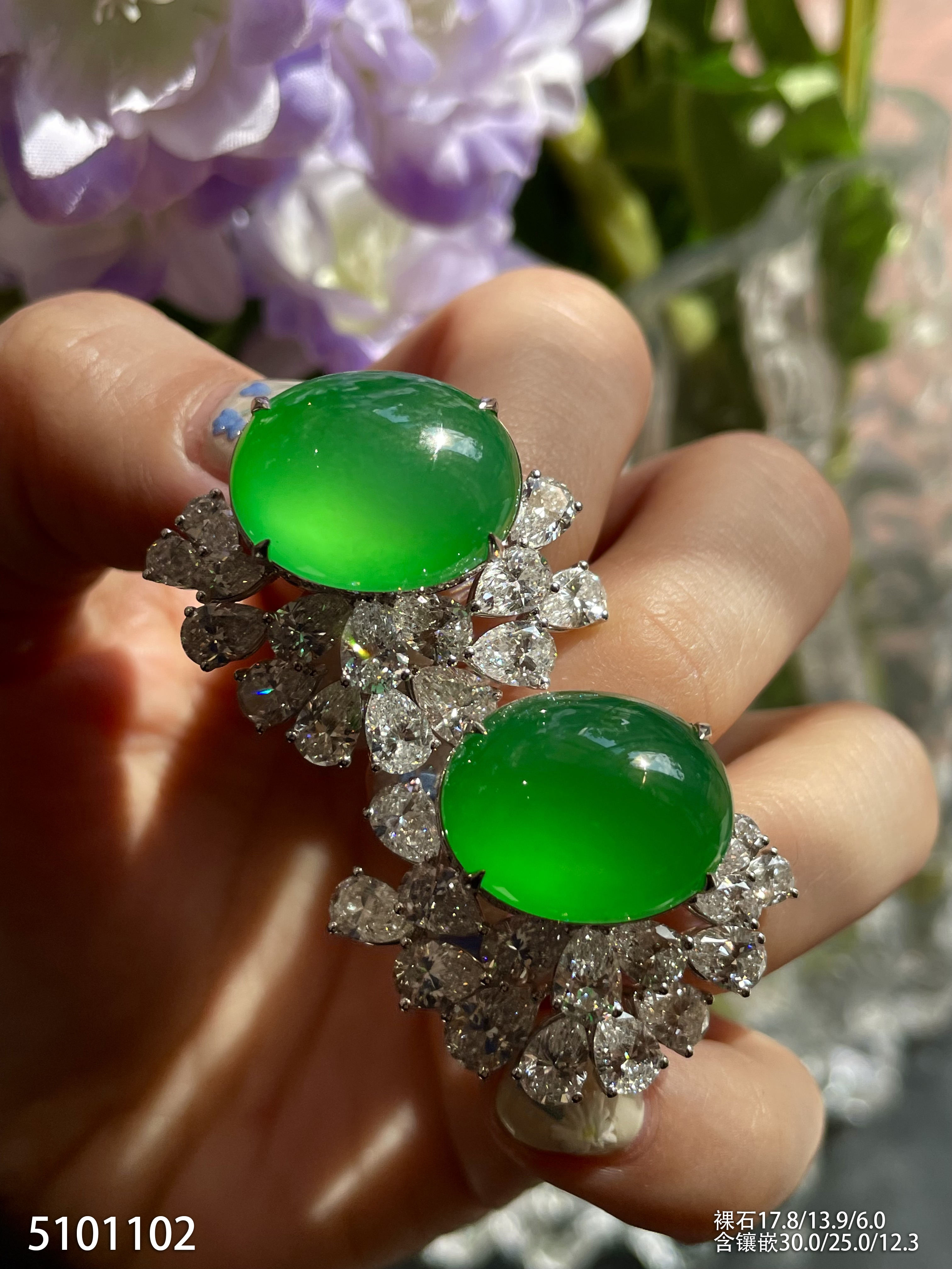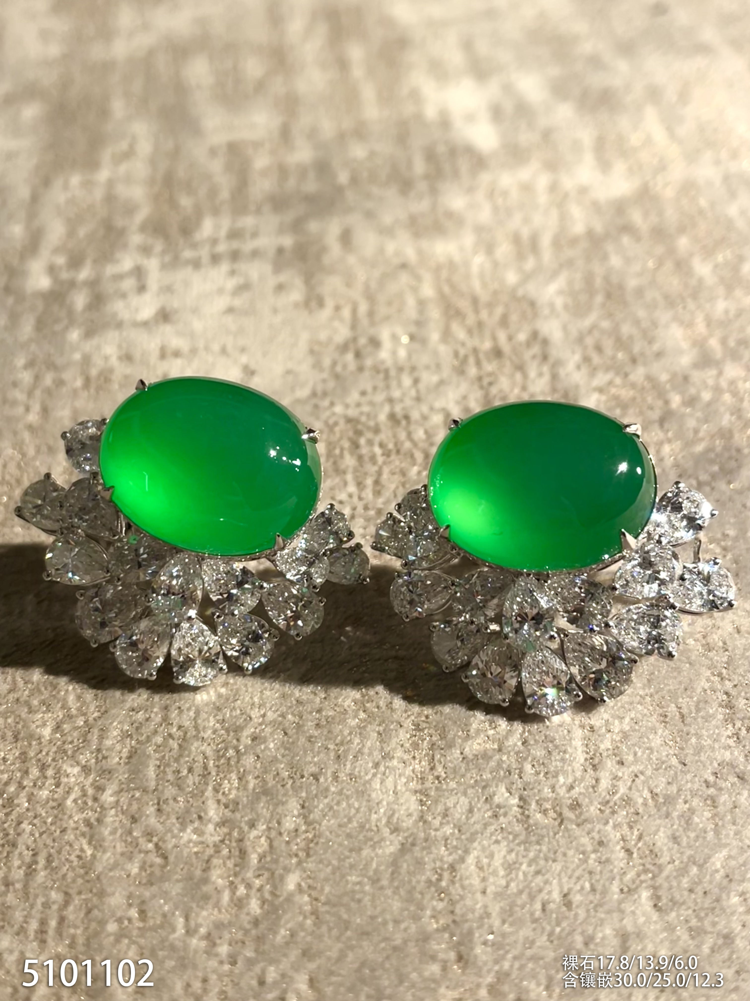 玻璃种阳艳绿蛋面耳钉【5101102】具体价格微信咨询