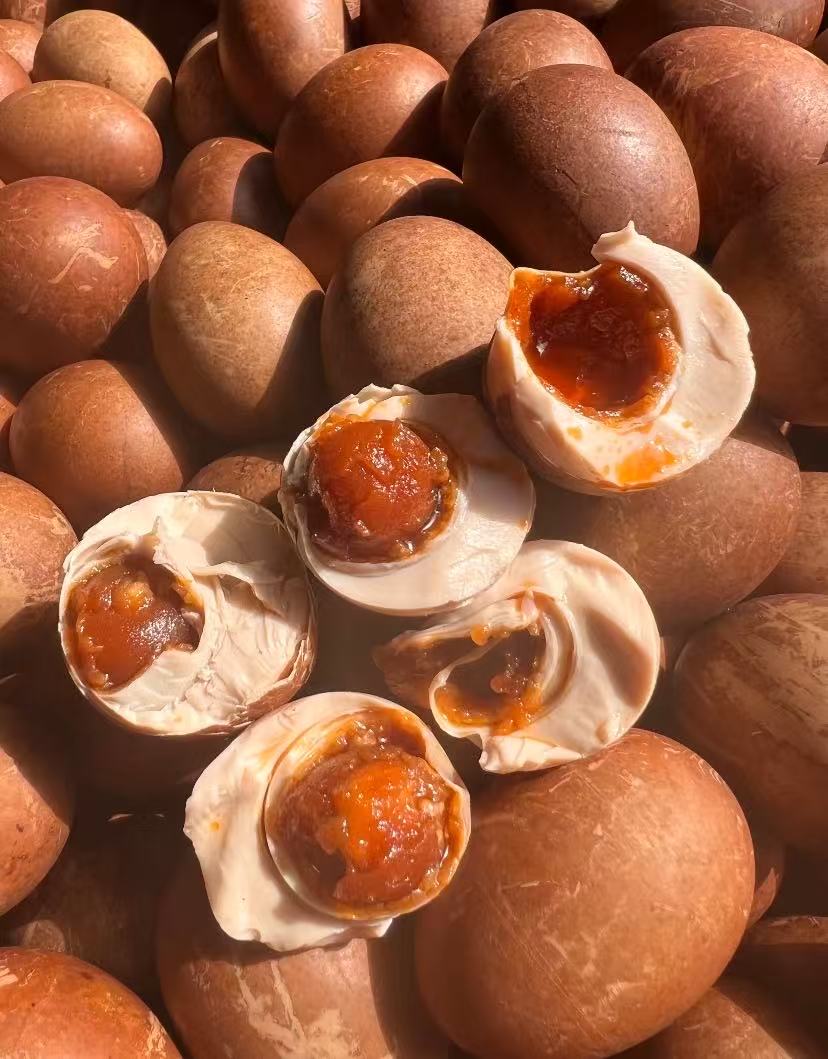 土家铁皮烤鸭蛋 采用散养麻鸭所产鸭蛋,与红茶高温烤制铁皮色,👄咸香可口,富油多砂,焦香
