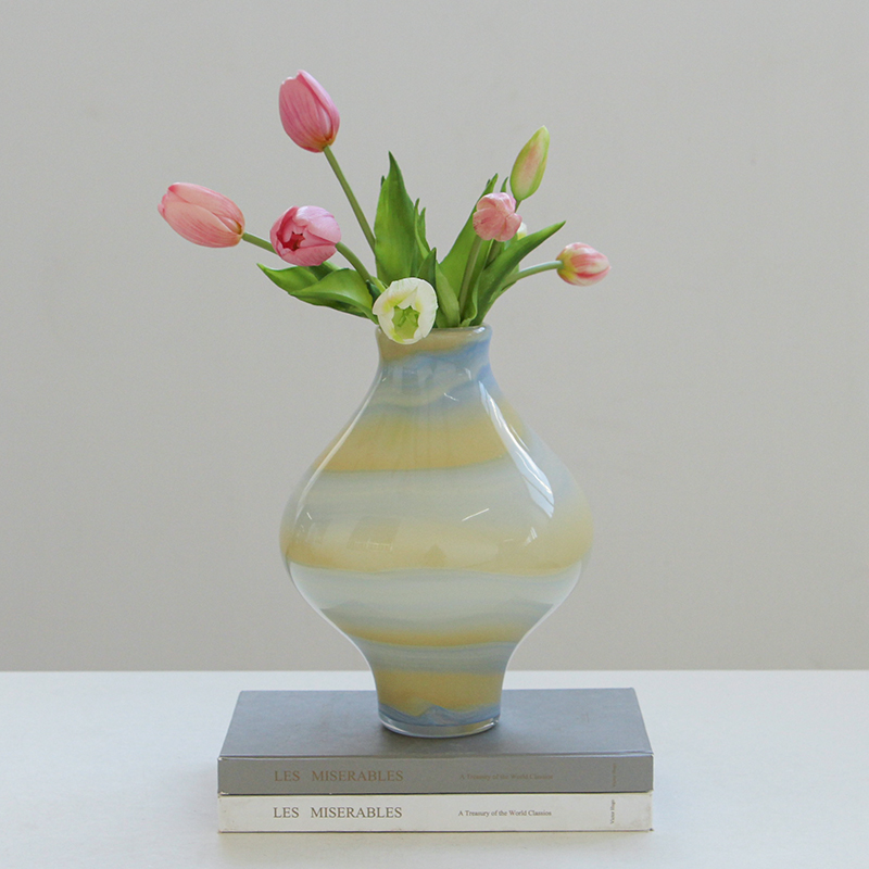 现代简约渐变纹花瓶仿真花摆件家居样板房客厅玄关台面郁金香装饰