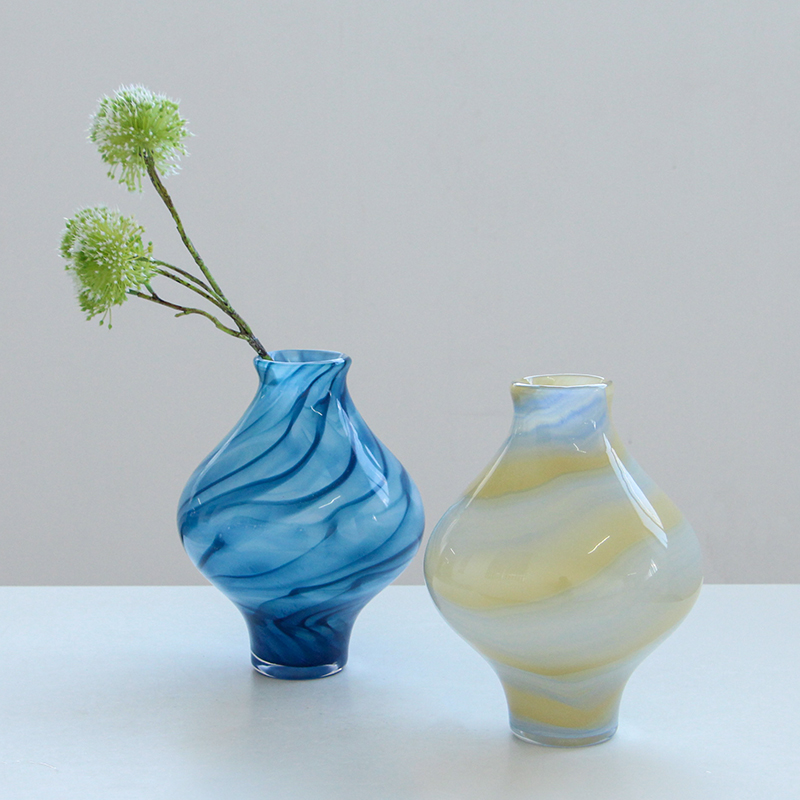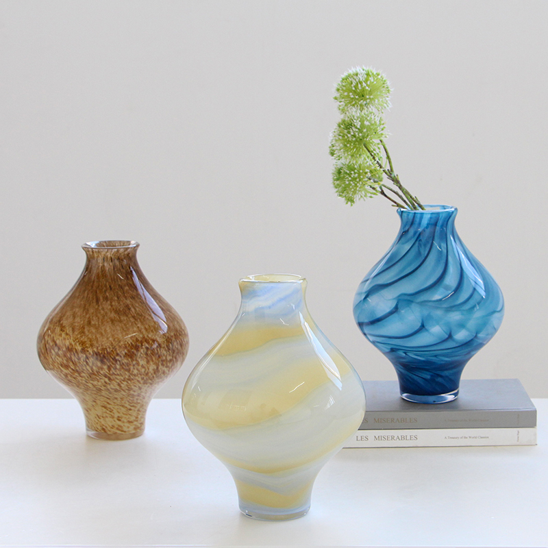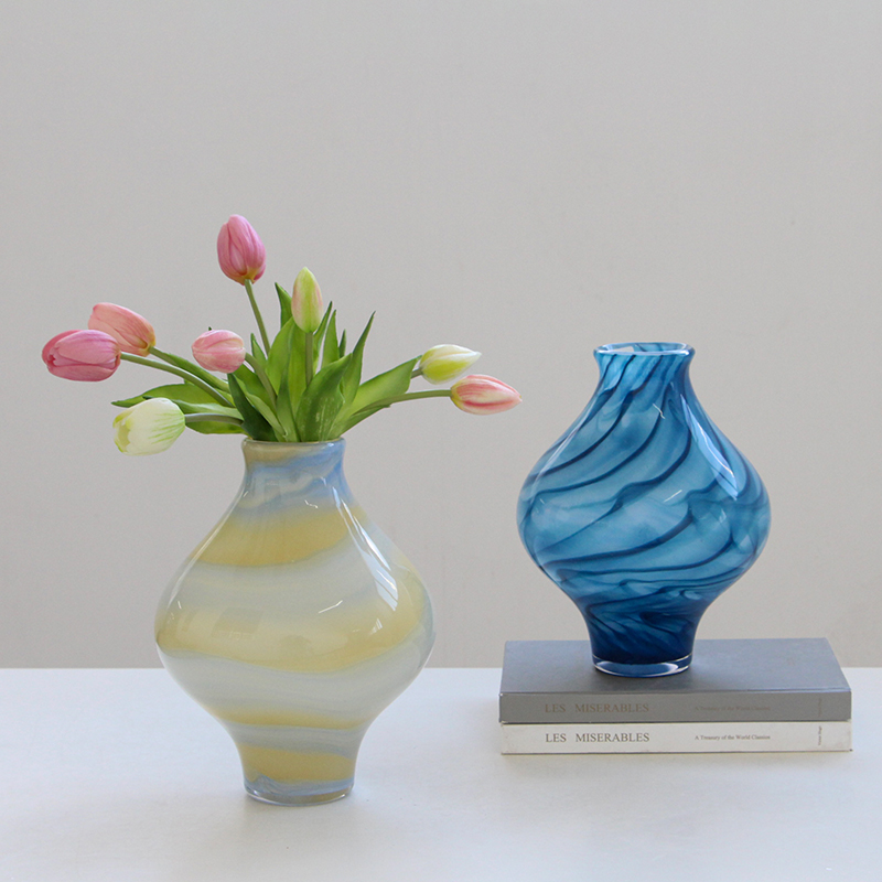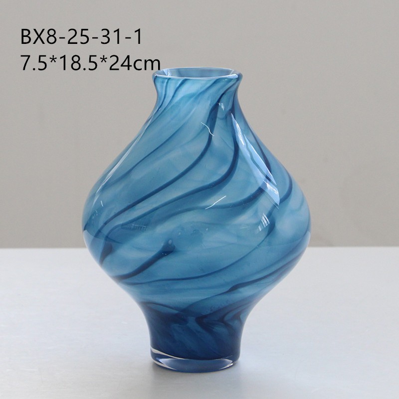高端流体彩色水墨大肚玻璃花瓶摆件客厅电视柜餐桌水养插花装饰品
