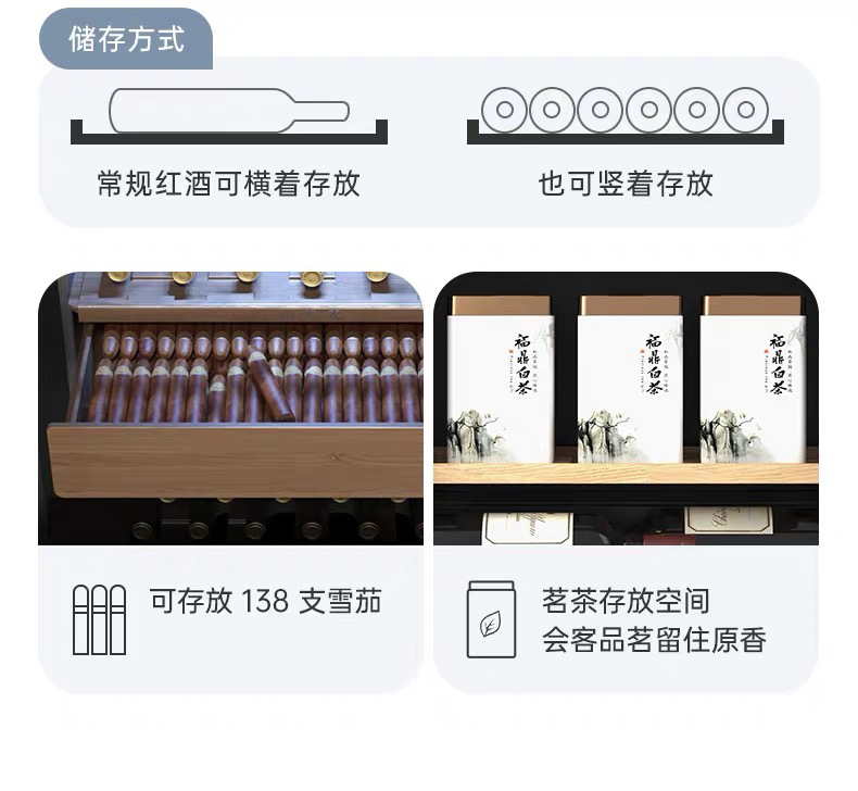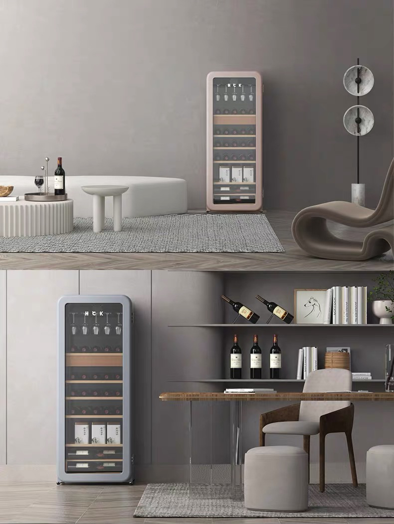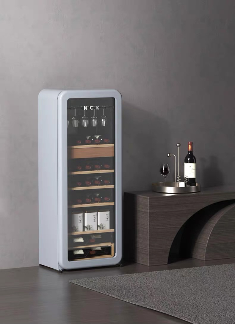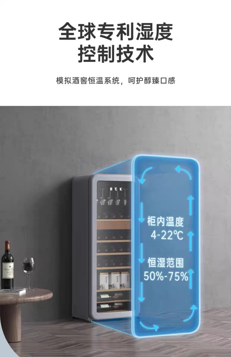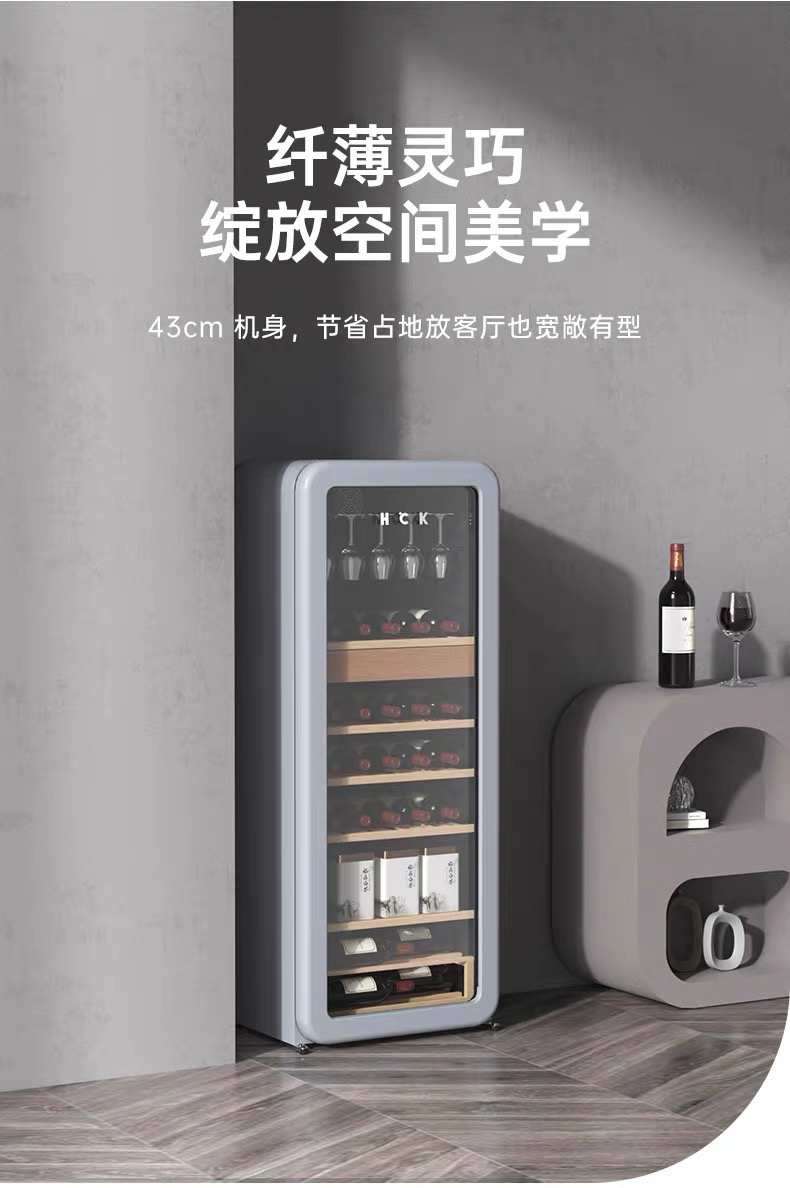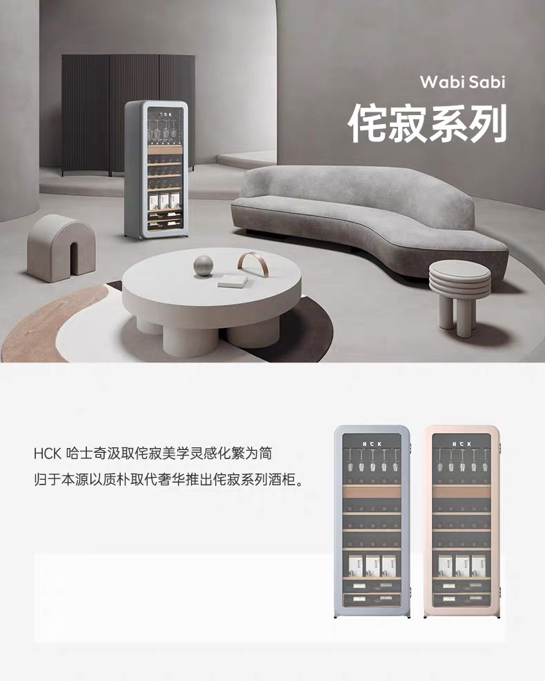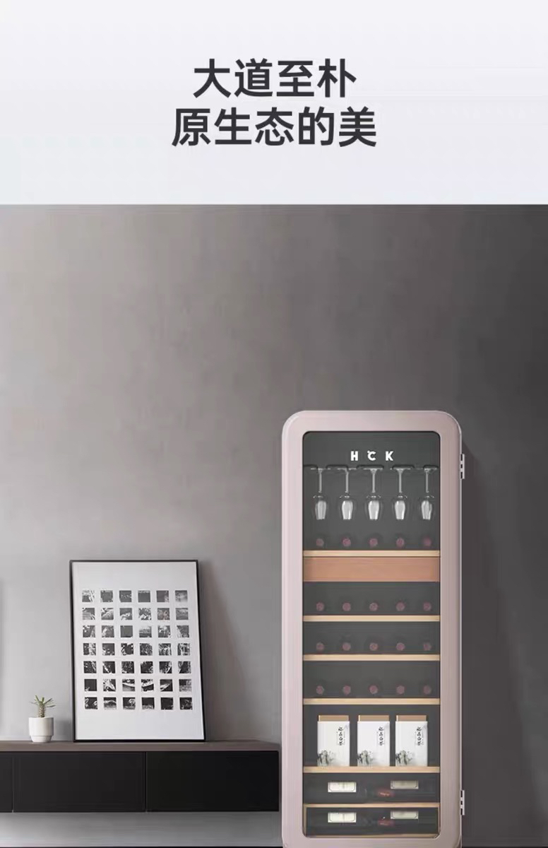 HCK哈士奇208-RA侘寂风红酒柜家用恒温恒湿茶叶嵌入式客厅超薄冰吧冰箱