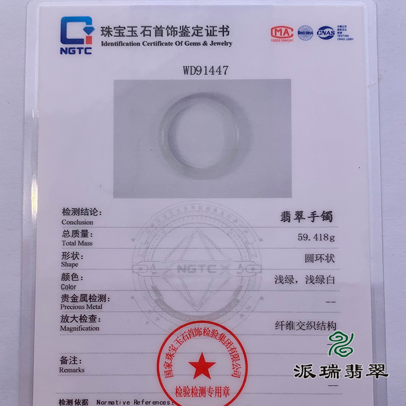 派瑞翡翠 翡翠手镯 糯种 浅绿色