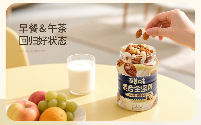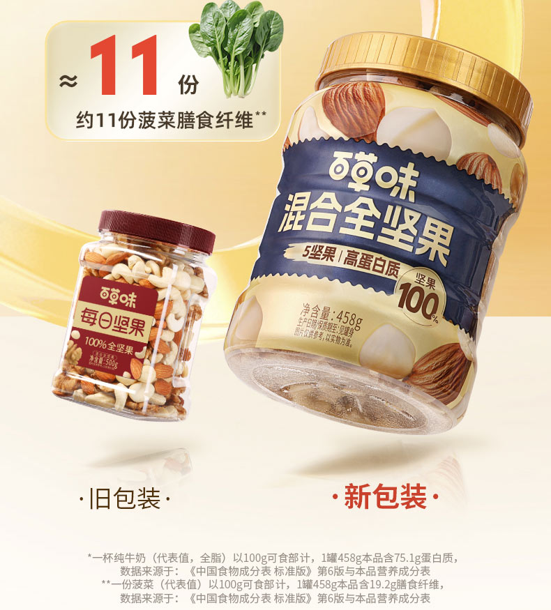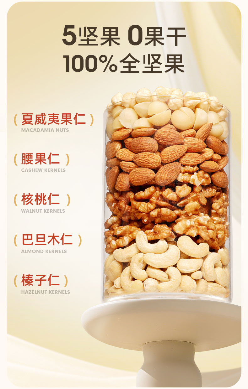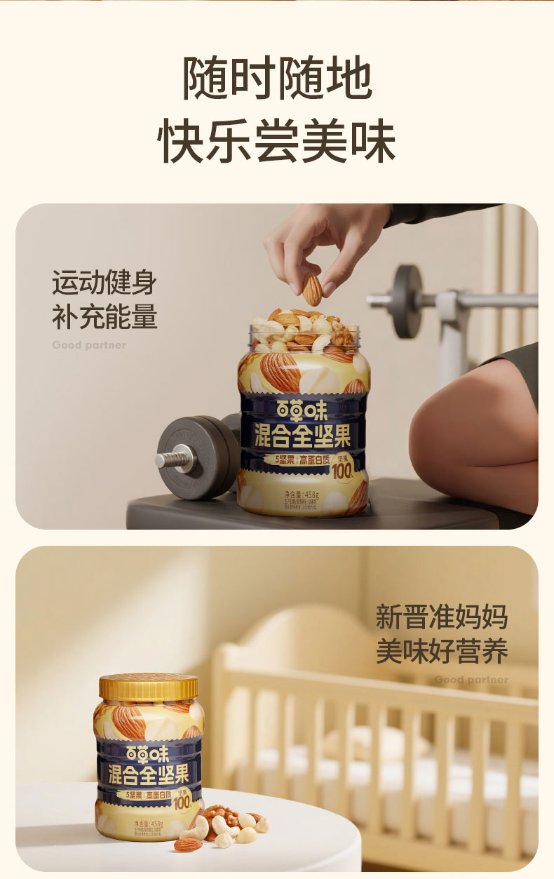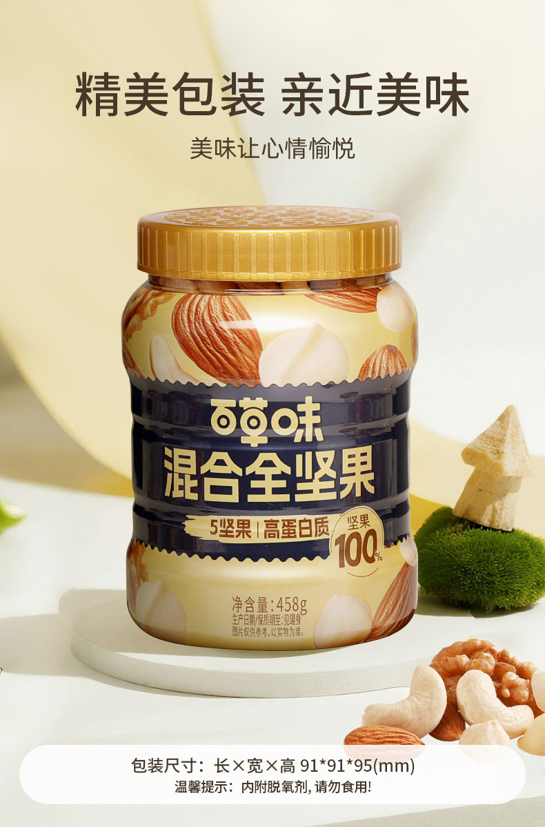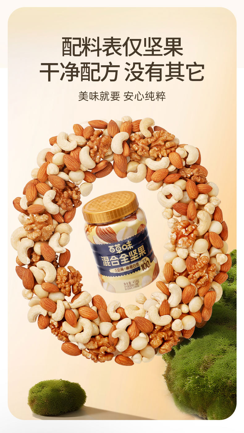 【百草味】混合纯坚果 458g(5+0/圆罐装)