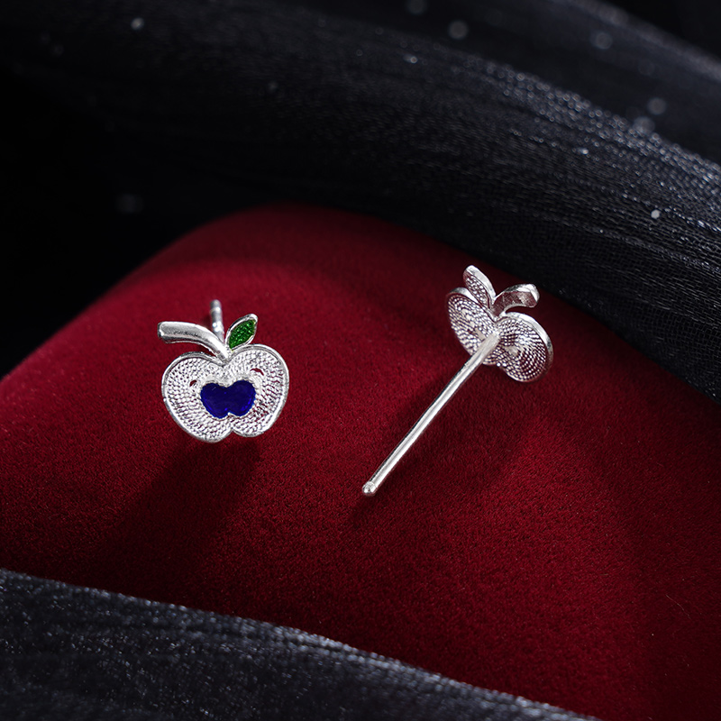子佩集S990银【平安是福】耳钉【CED5-2】纯银珐琅彩苹果2405