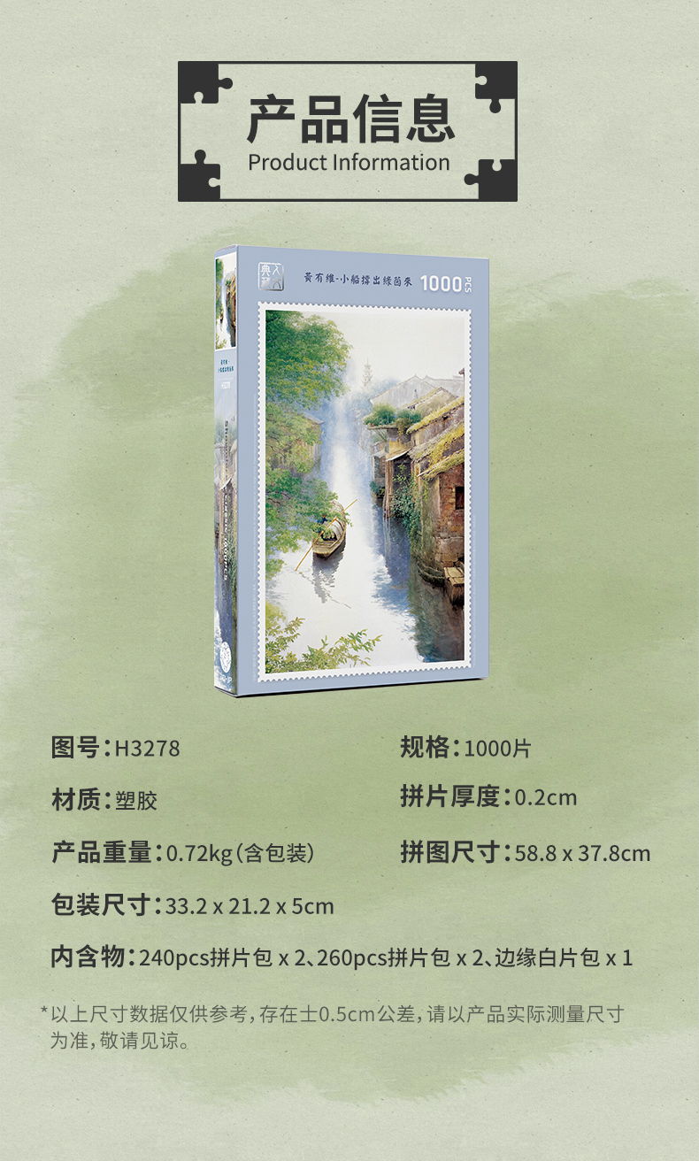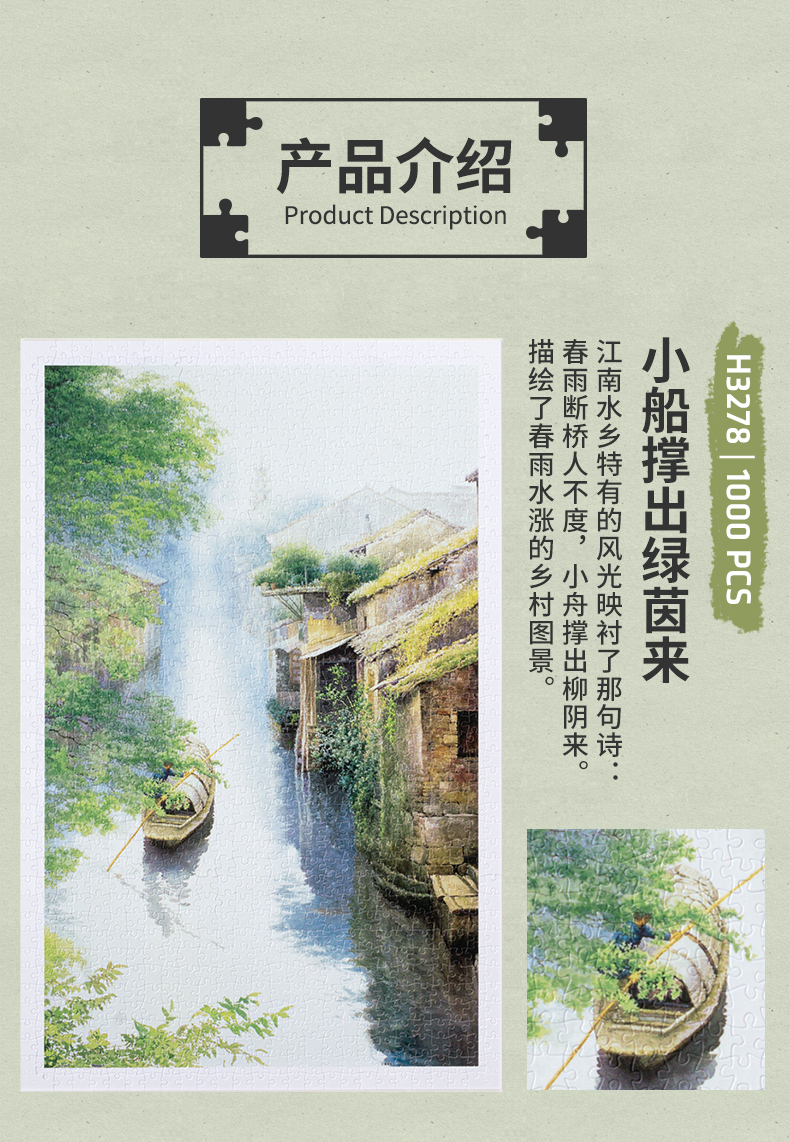 【折扣商品 不退不换】1000片 平面塑料拼图 H3278 黄有维-小船撑出绿茵来