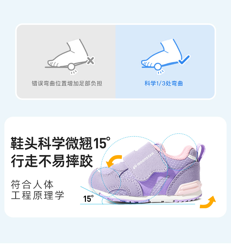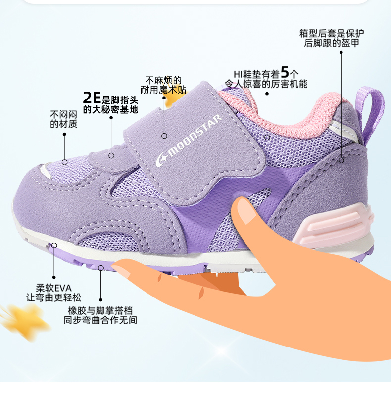 MOONSTAR月星春新品2-6岁机能学步鞋婴幼童童鞋宝宝学走鞋宽魔术贴