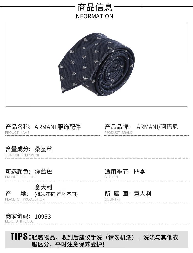 阿玛尼(ARMANI) 男士领带 男士时尚百搭气质领带 10953
