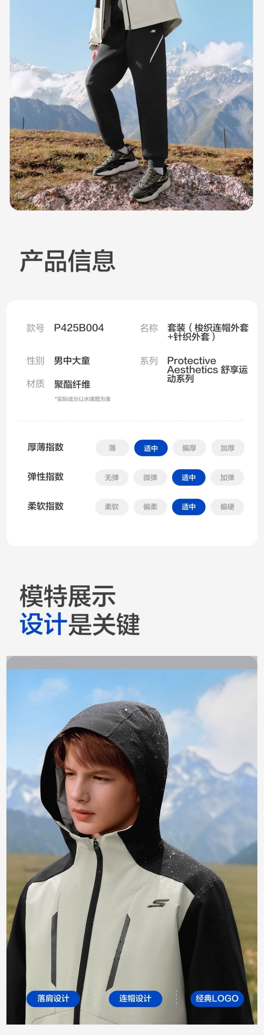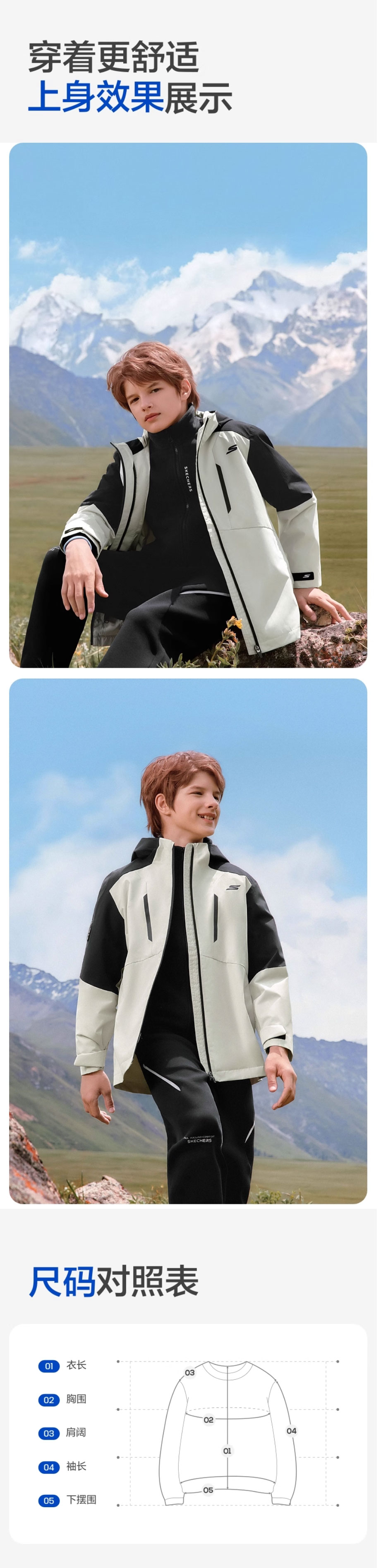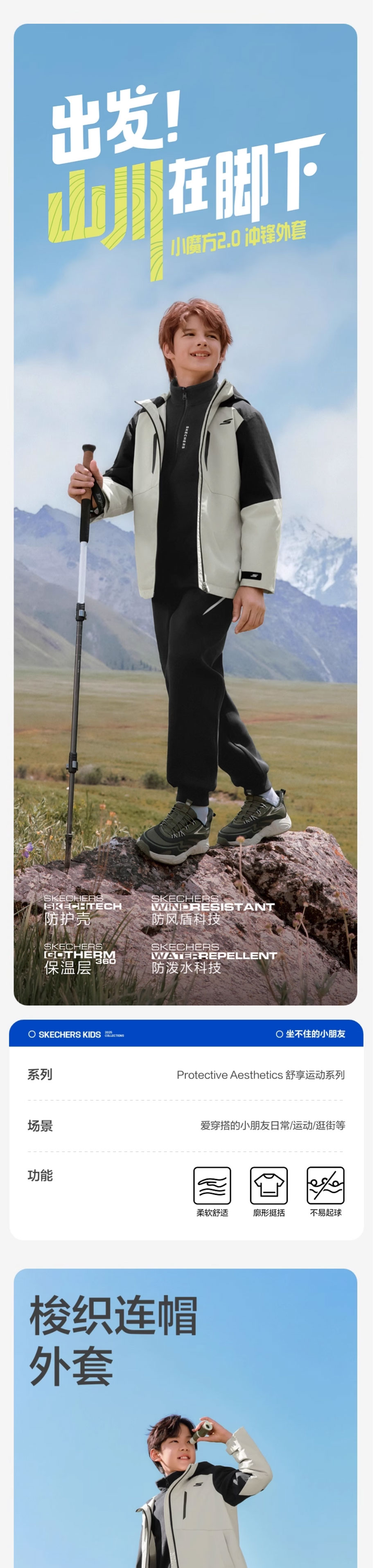 .Skechers斯凯奇儿童户外两件套男童防风防水防污保暖梭织连帽外套P425B004-02VP