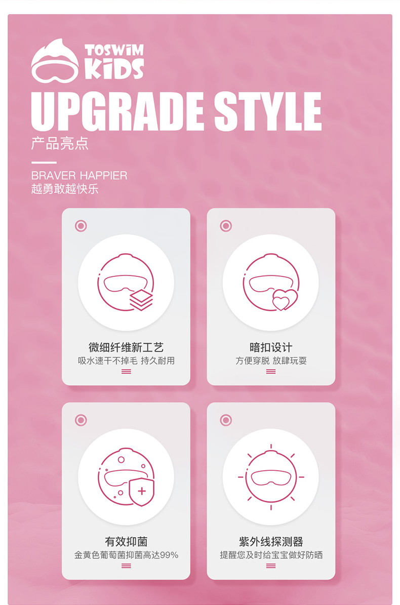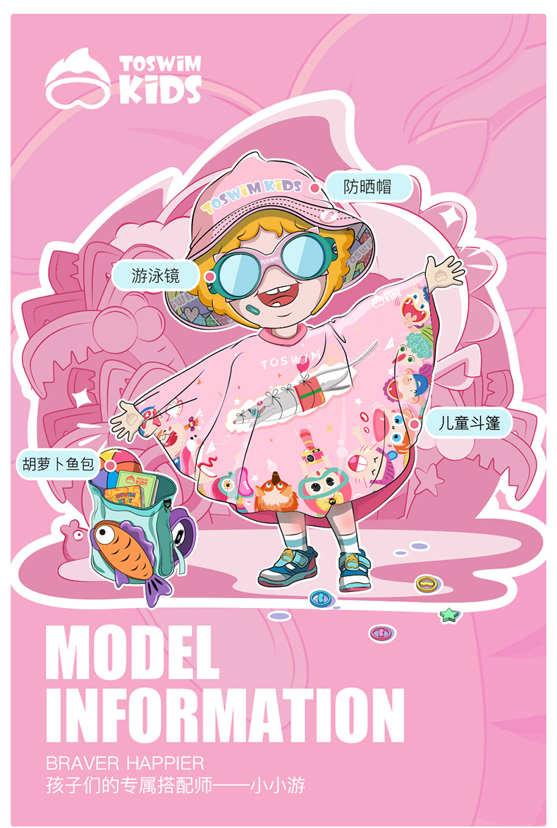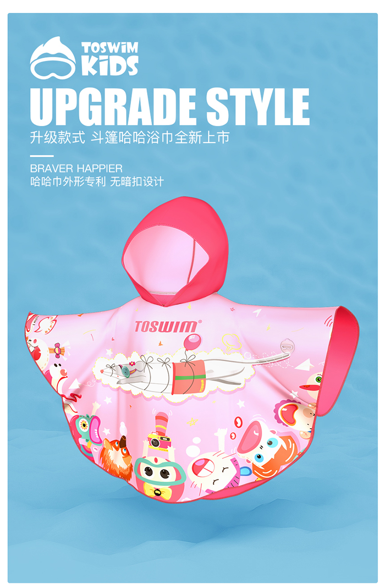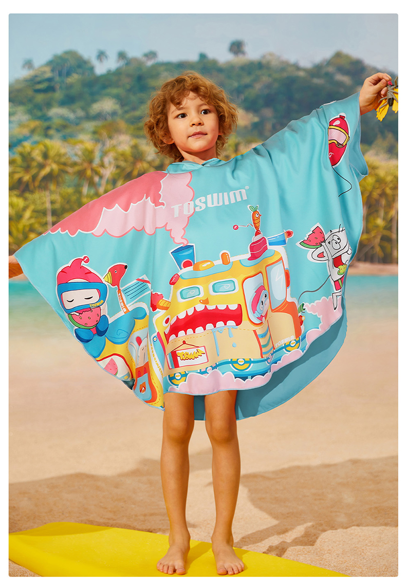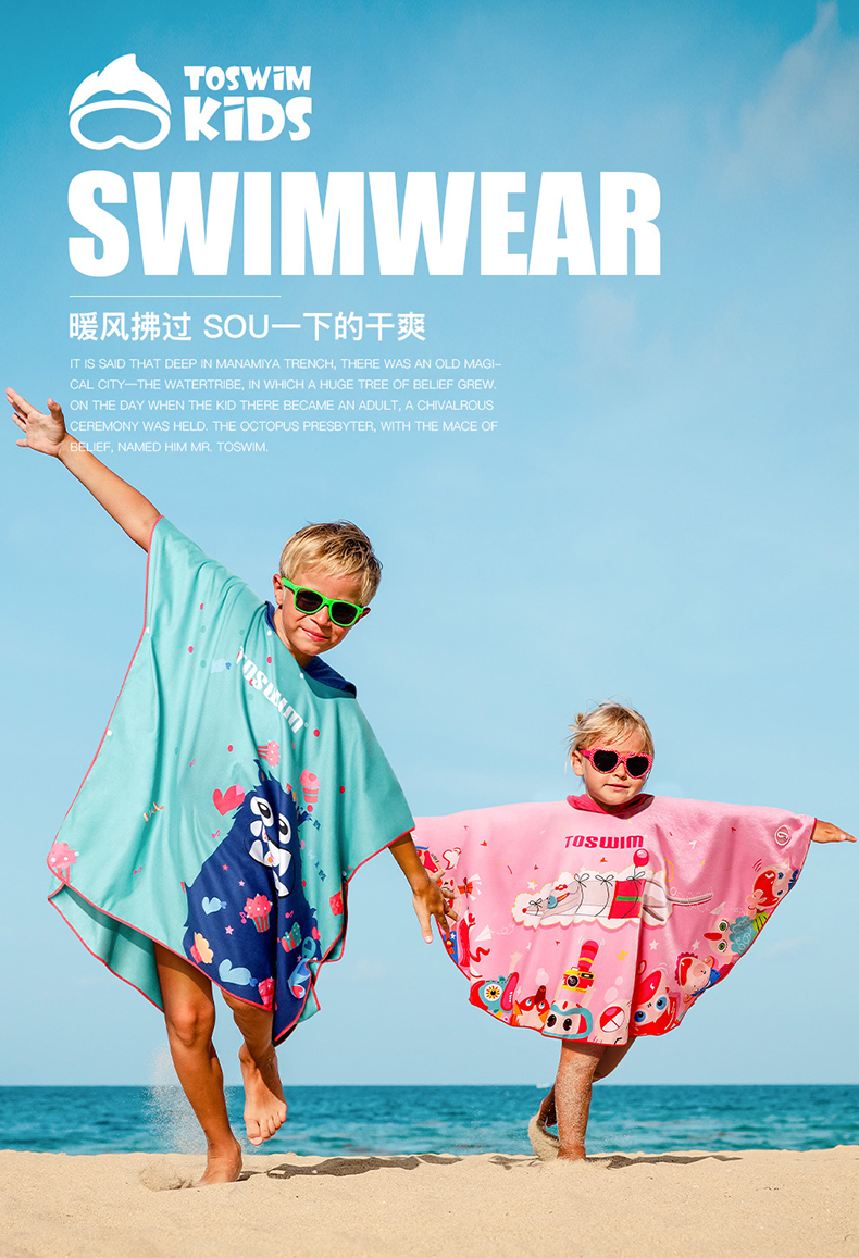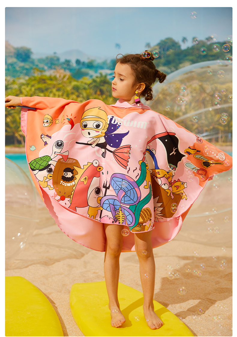 【云优选】TOSWIM拓胜速干浴巾儿童斗篷沙滩巾游泳毛巾吸水巾男女童便携防晒浴袍