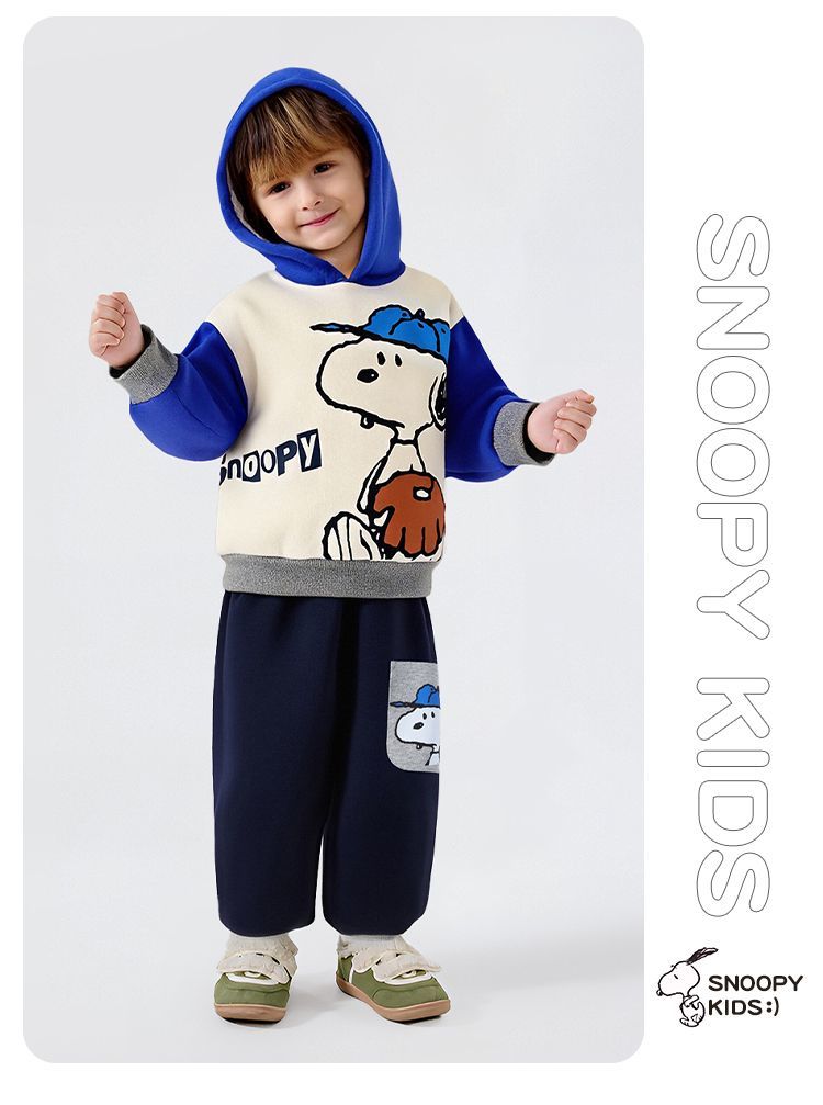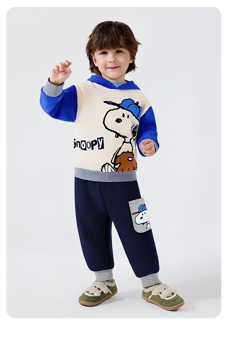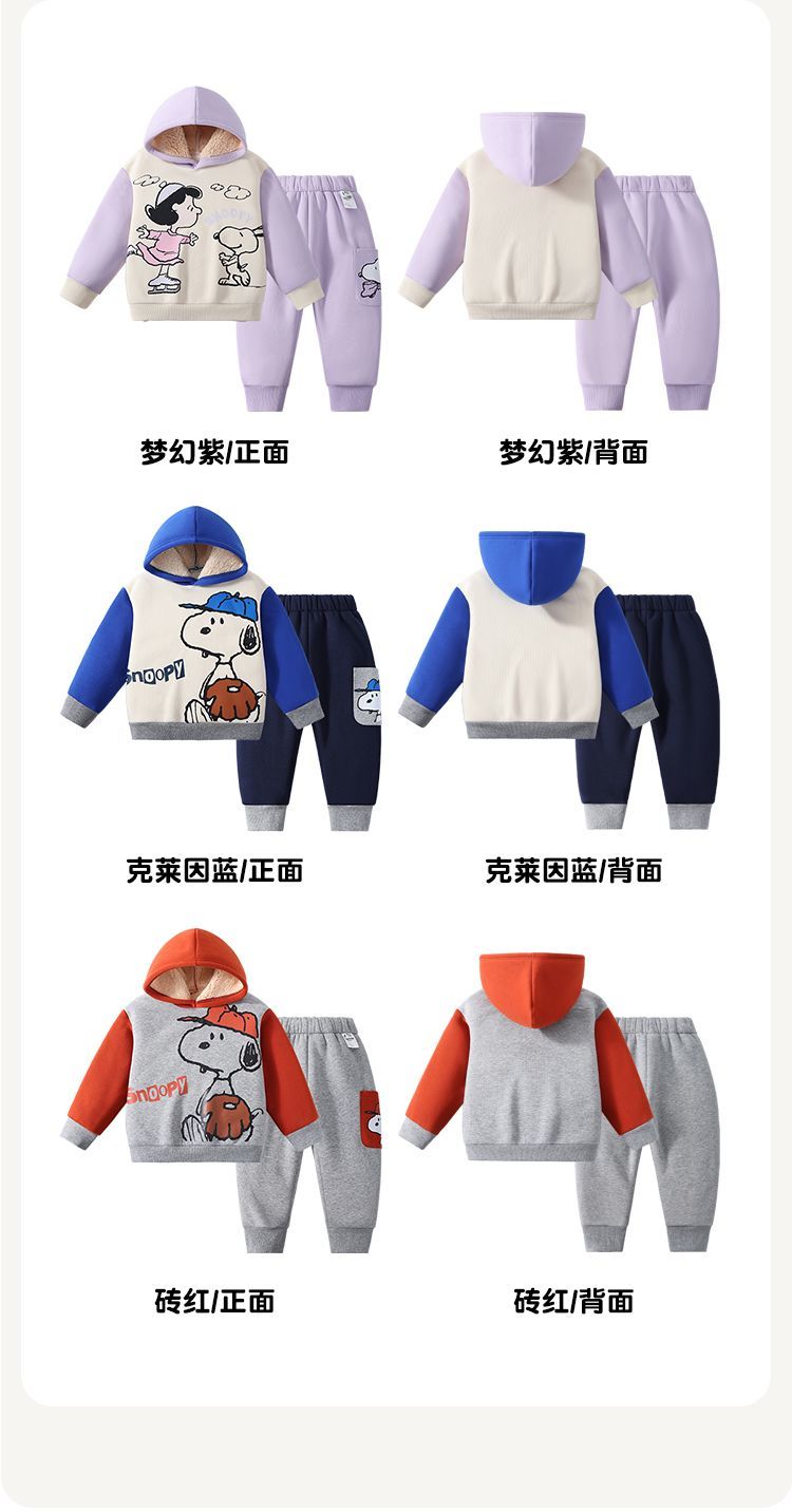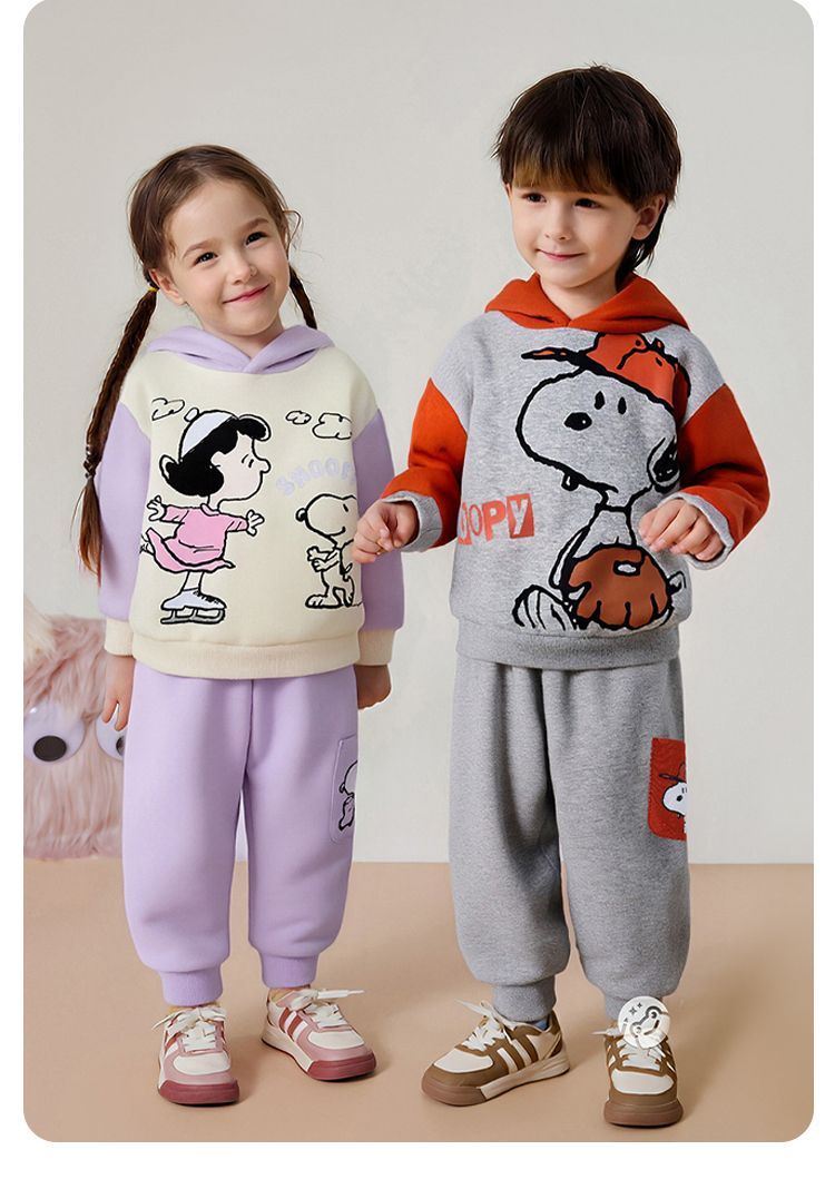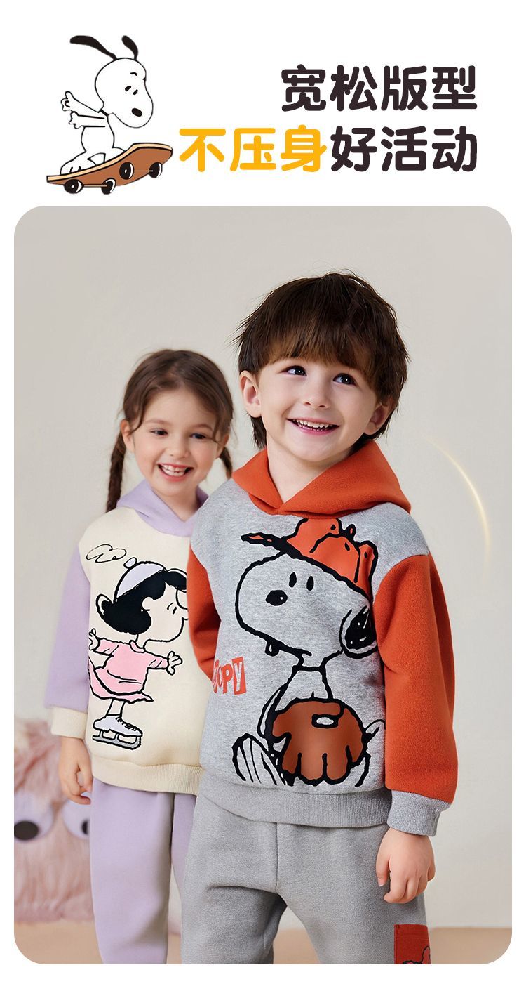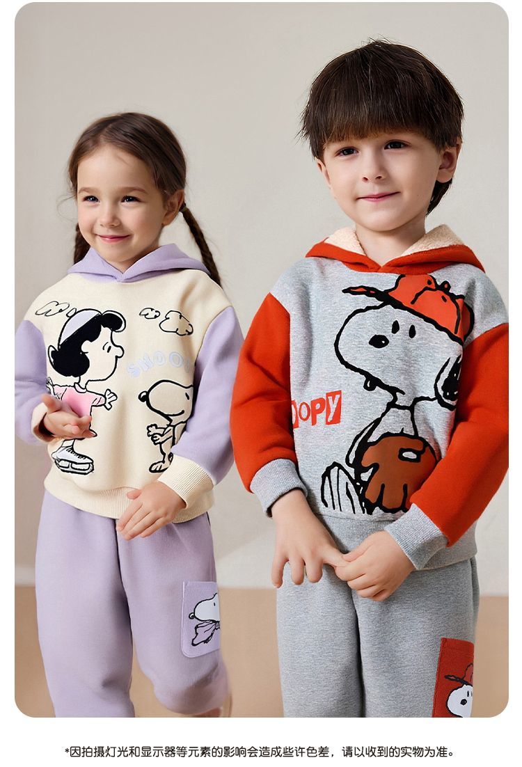 【加绒两件套】【90-130】【史努比】男女童加绒套装卫衣卫裤