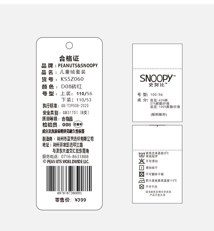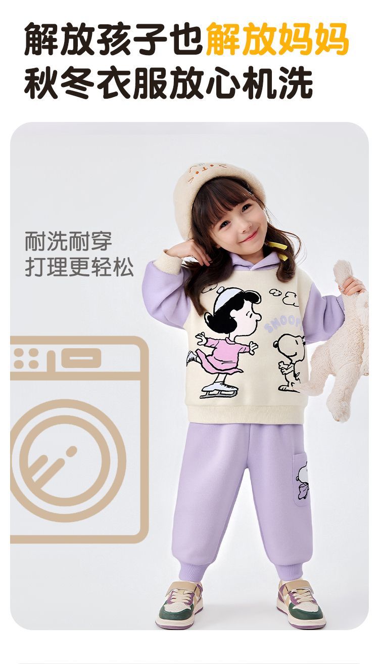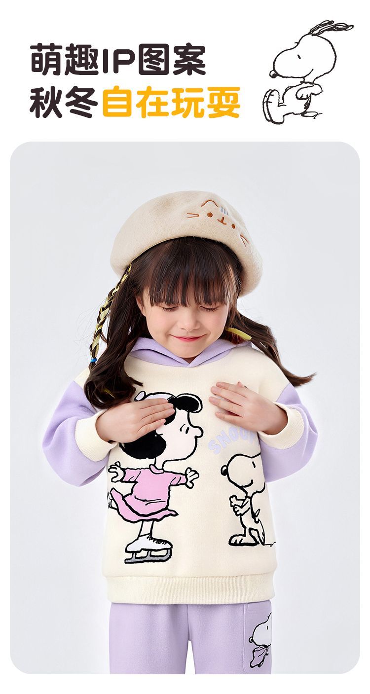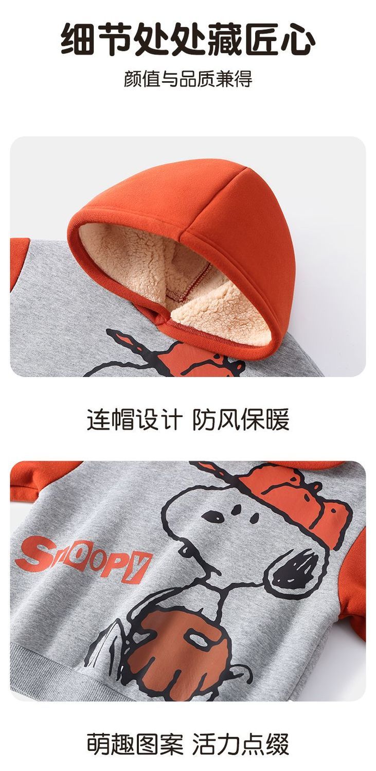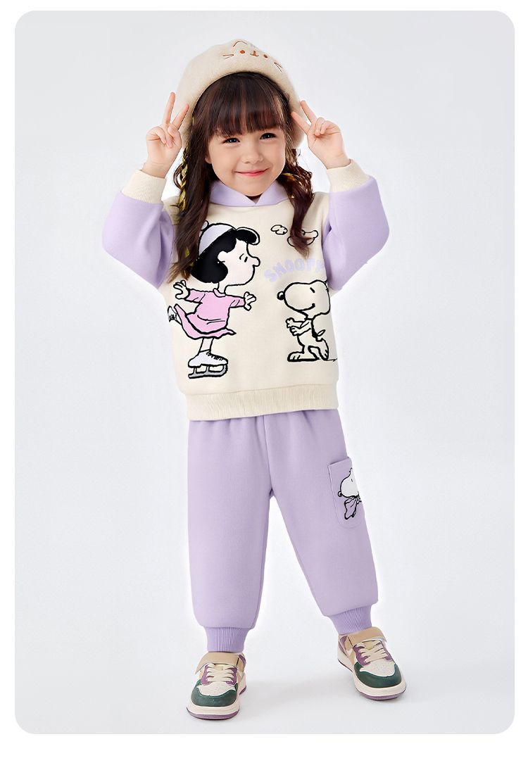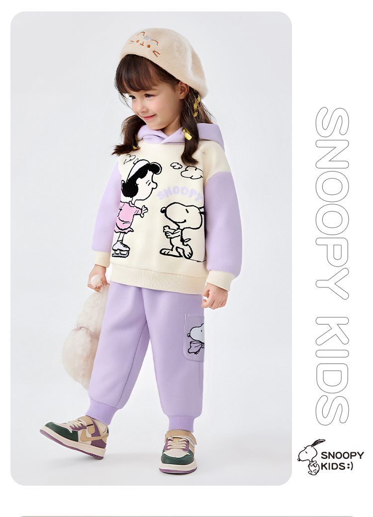 【加绒两件套】【90-130】【史努比】男女童加绒套装卫衣卫裤