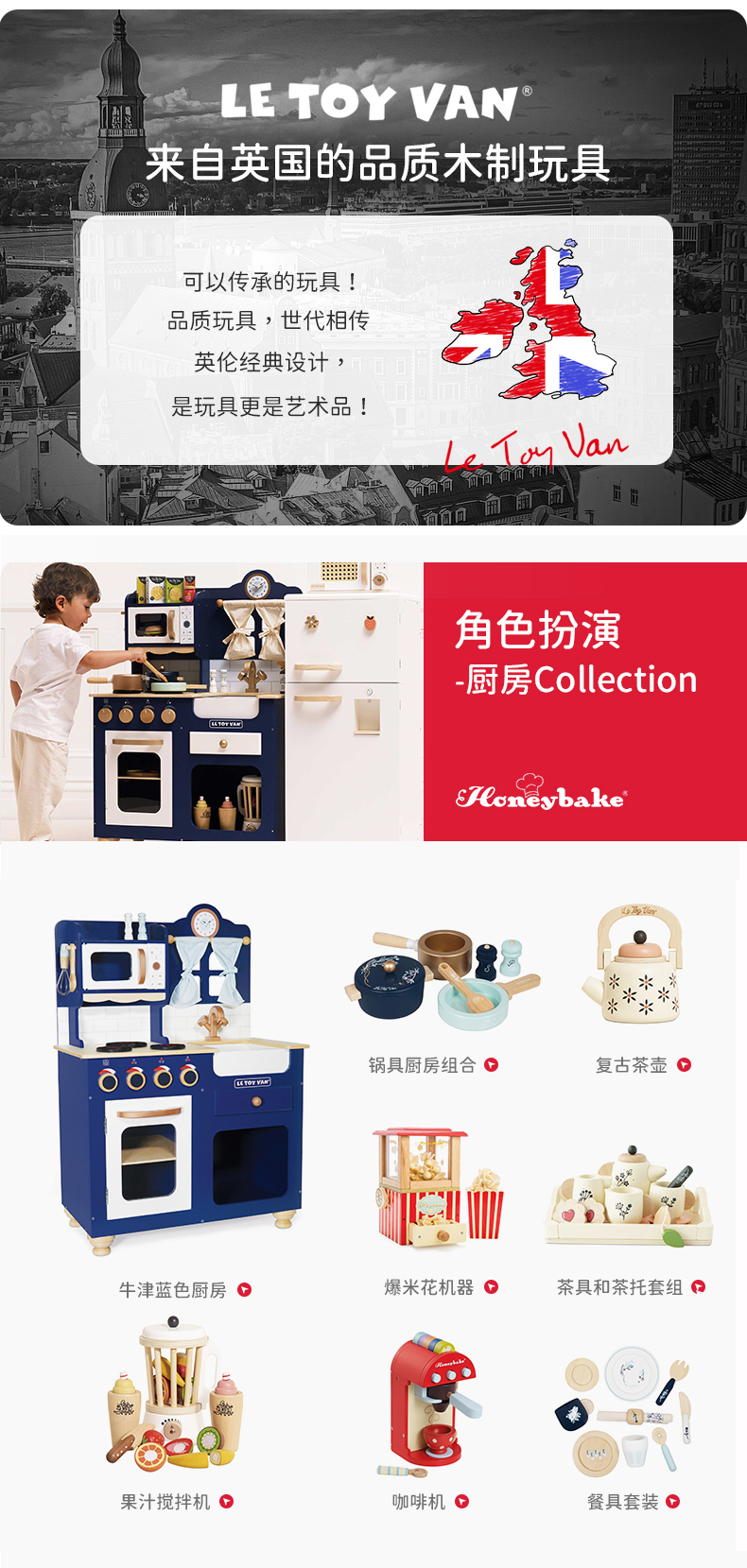 LE TOY VAN品牌"Popcorn Machine 角色扮演木制玩具-爆米花机器,果汁机,咖啡机,冰激凌机