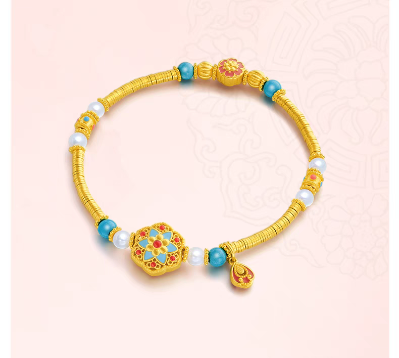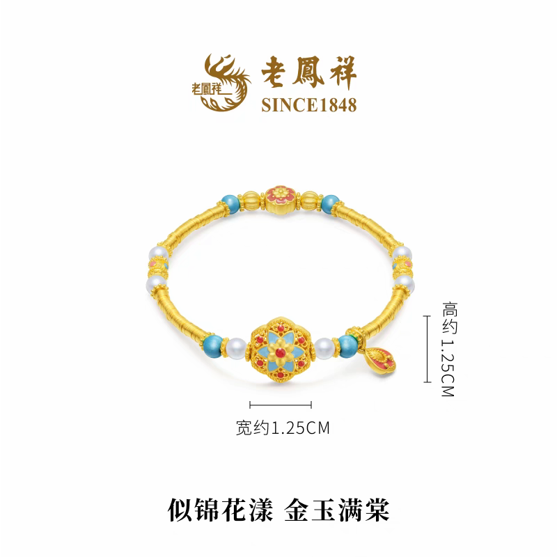 【老凤祥】盛唐风华系列·花花唐金玉满棠海棠花古法黄金手串,足金999,老凤祥专属系列,可到我们老凤祥门店自取