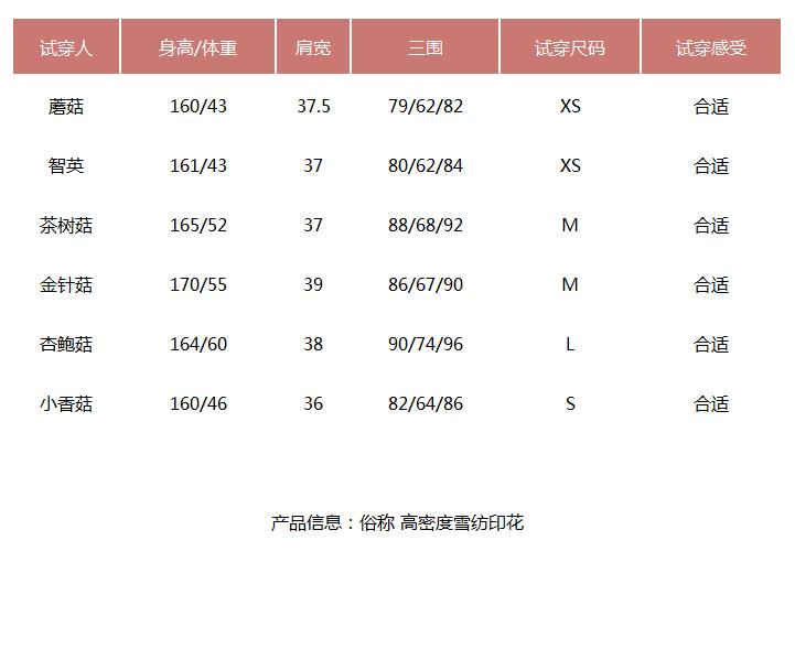 提醒:尺码是纯手工平铺测量,可能存在1-3CM的误差属于正常范围! 试穿表格,仅供参考!
