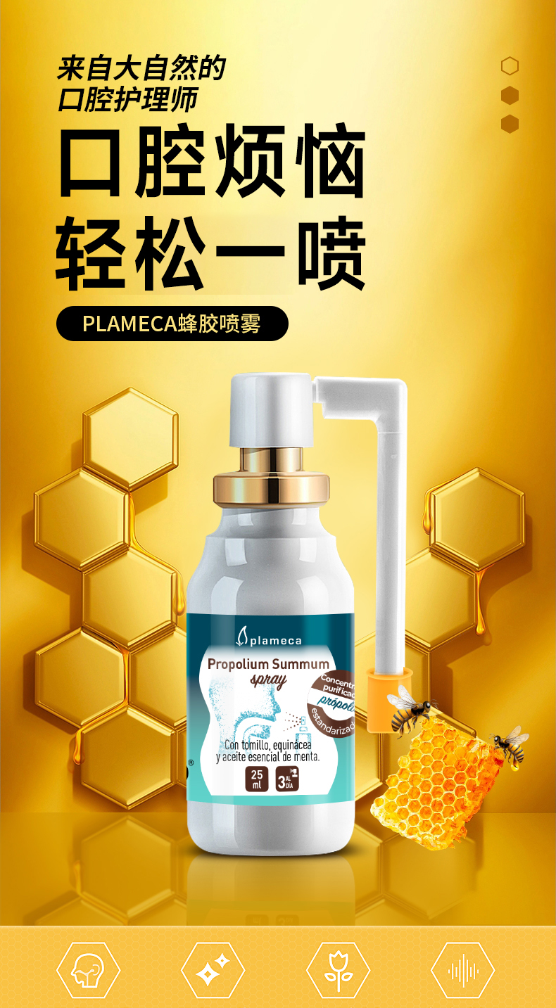 【邱震海专属】西班牙进口Plameca蜂胶口腔喷雾 抗菌抗炎 清新口气 促进胃溃疡愈合,还对慢性胃炎、口腔溃疡、幽门螺旋杆菌有辅助作用 25ml/瓶(有效期至2026年4月,介意慎拍)