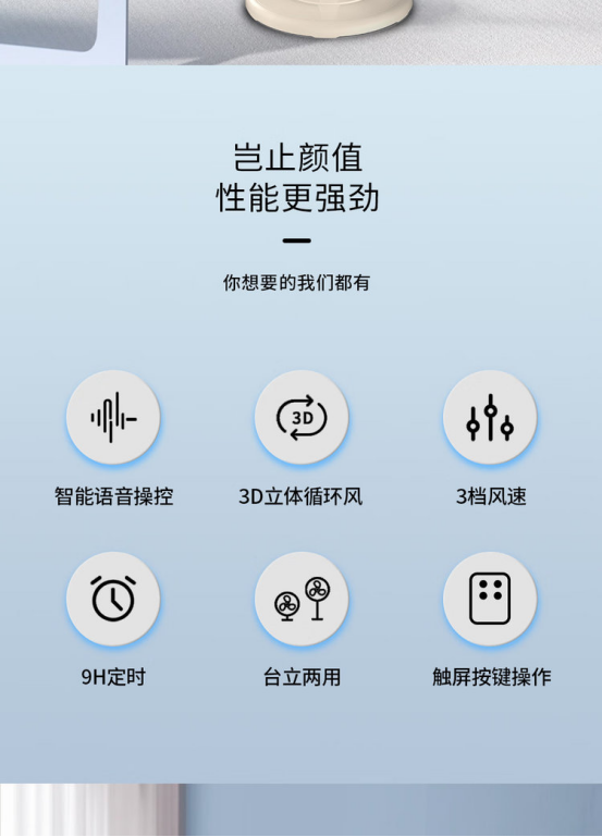 一款出色的风扇,应具备这些品质: ✔最好要节能省电,还要功能多样,使用方便的 ✔最好客厅、卧室、书房等各种场景都适用的 ✔最好大人小孩都能轻松操作的 ✔最好风感舒适,低噪吹风的 ✔最好是操作便捷,多档调节的 ✔最重要的是,价格亲民的 而这些品质我们这款智能语音循环扇都有!🙋♀️