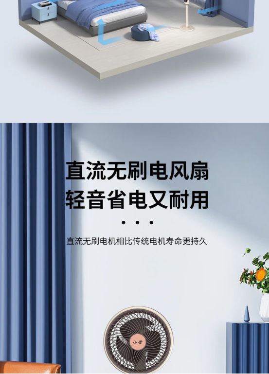 采用直流无刷电机的循环扇 相比传统电扇也确实更加省电!风力更强! 长时间使用也不会心疼电费哦! 这主要得益于直流电机 升级了空气动力循环风道系统 使室内的空气流动起来 从而带动房间内的空气流动 让室内的空气更加清新和流通 节能黑科技,3天仅需1度电 因此,如果想要一个既实用又省电的风扇 小昔智能语音循环扇是一个很好的选择✌️