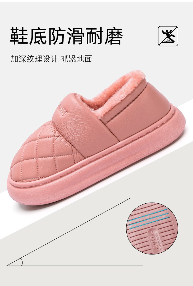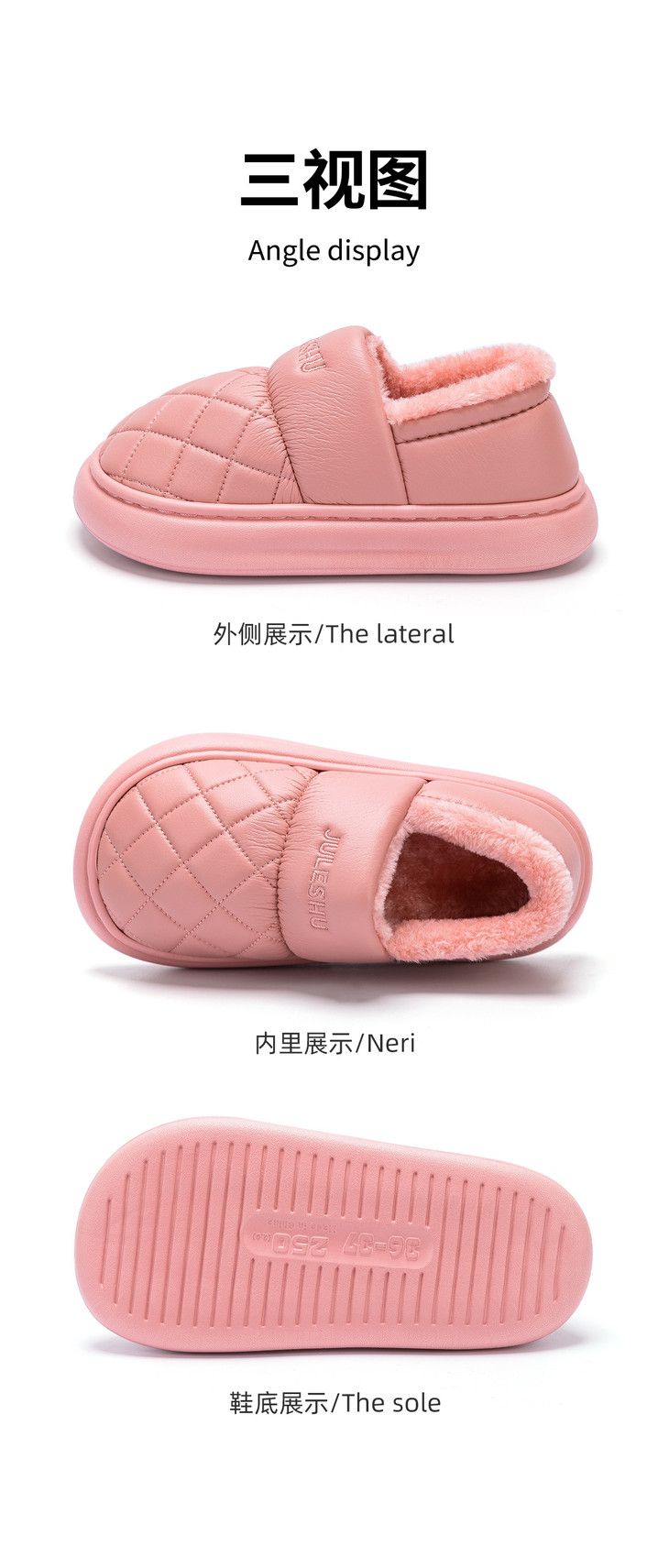 这款棉拖,底部有防滑立体纹路,增大了摩擦力,抓地非常牢靠。