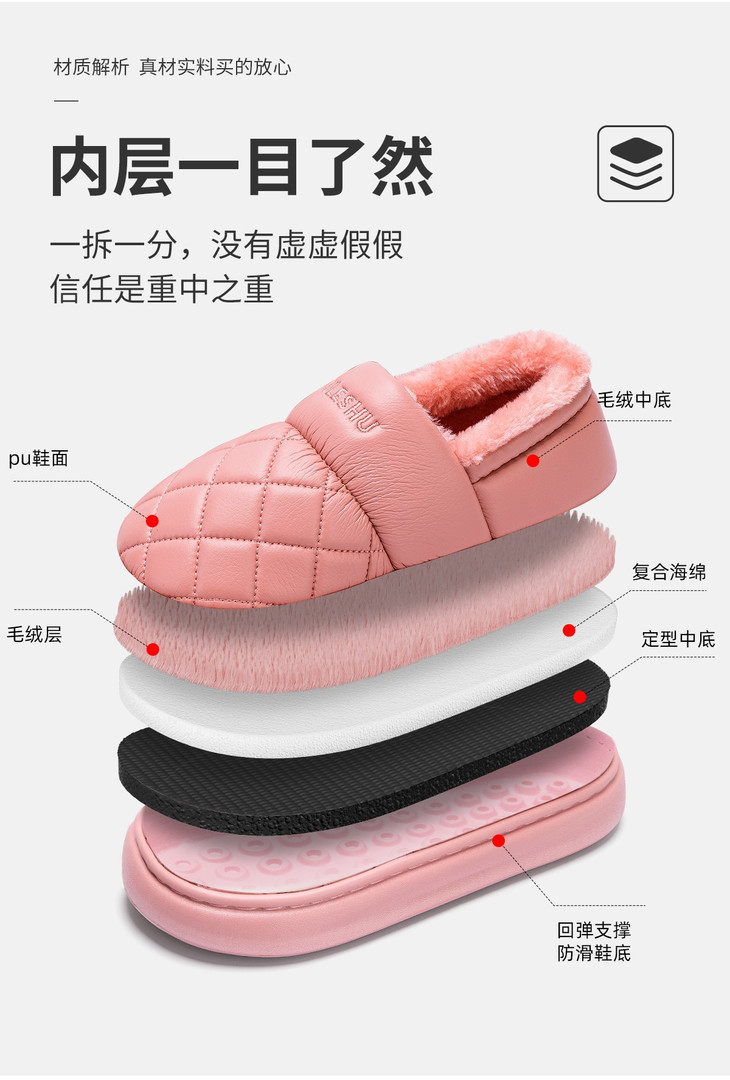 相比于大部分软塌塌的棉鞋来说,这个棉拖的弹力更胜一筹!踩上去舒舒服服,只有一个字「爽」!