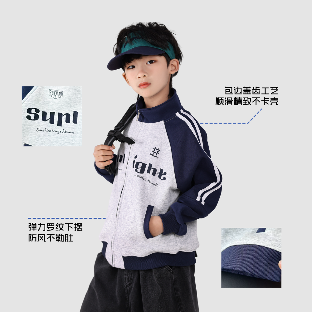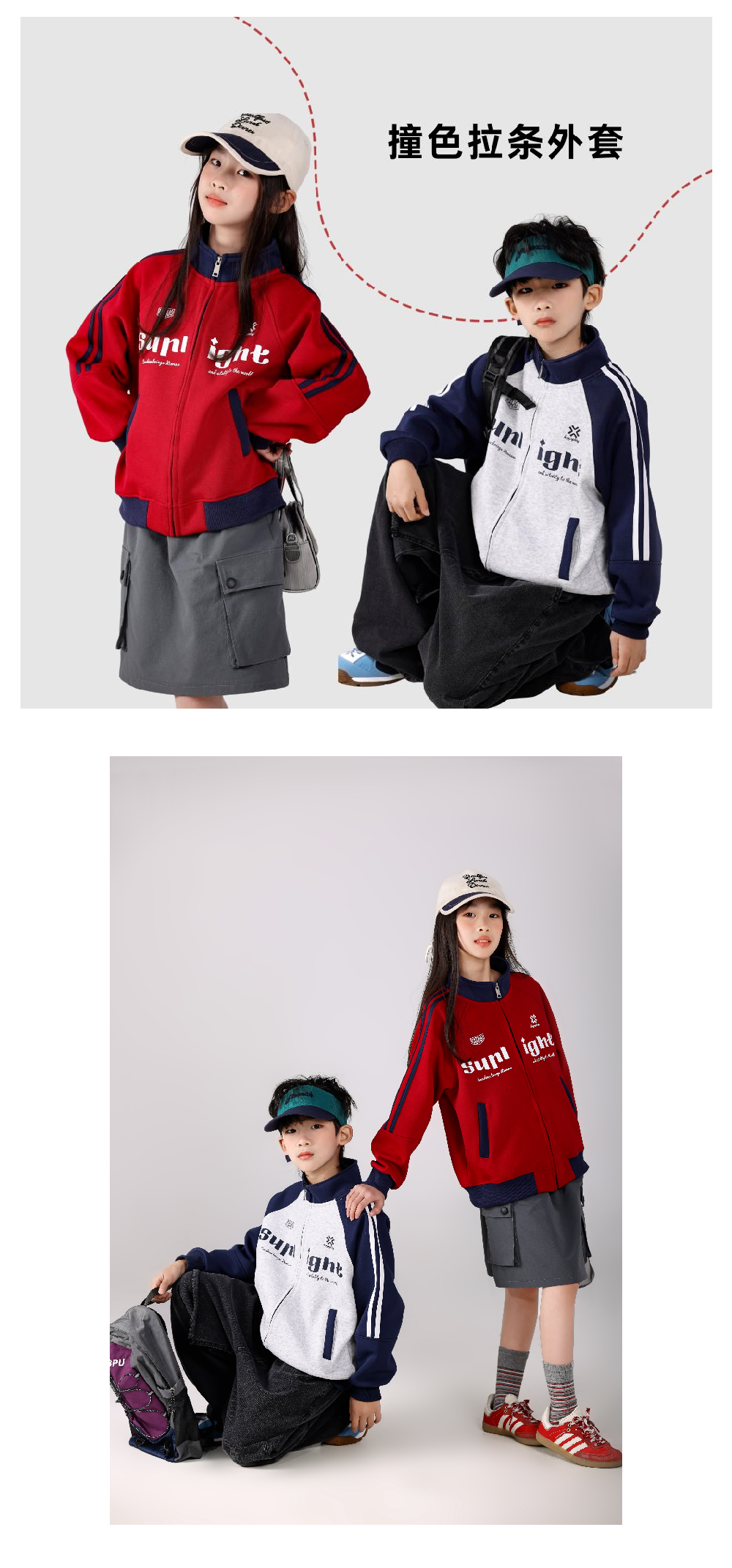 【MUBENMI木本木米2601撞色拉条外套】春日校园风撞色设计,复古撞色棒球服版型❗️回头率100%立领+拉链设计,防风不闷汗,春日刮风天也不怕娃着凉🥶