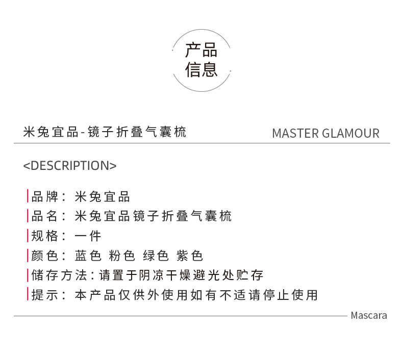 馨宜优品镜子折叠气囊梳颜色随机发 (231111)梳子按摩梳