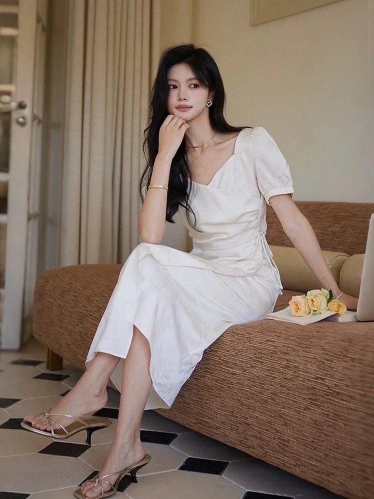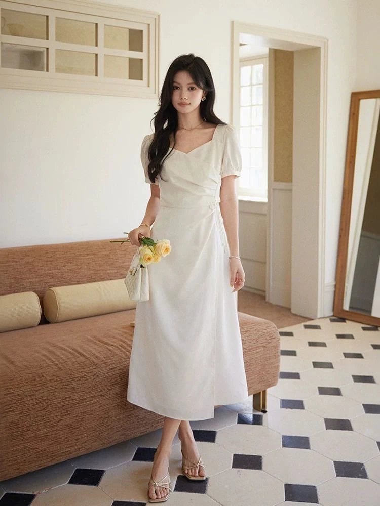 长裙的裙摆轻盈飘动,随着你的步伐摇曳生姿
