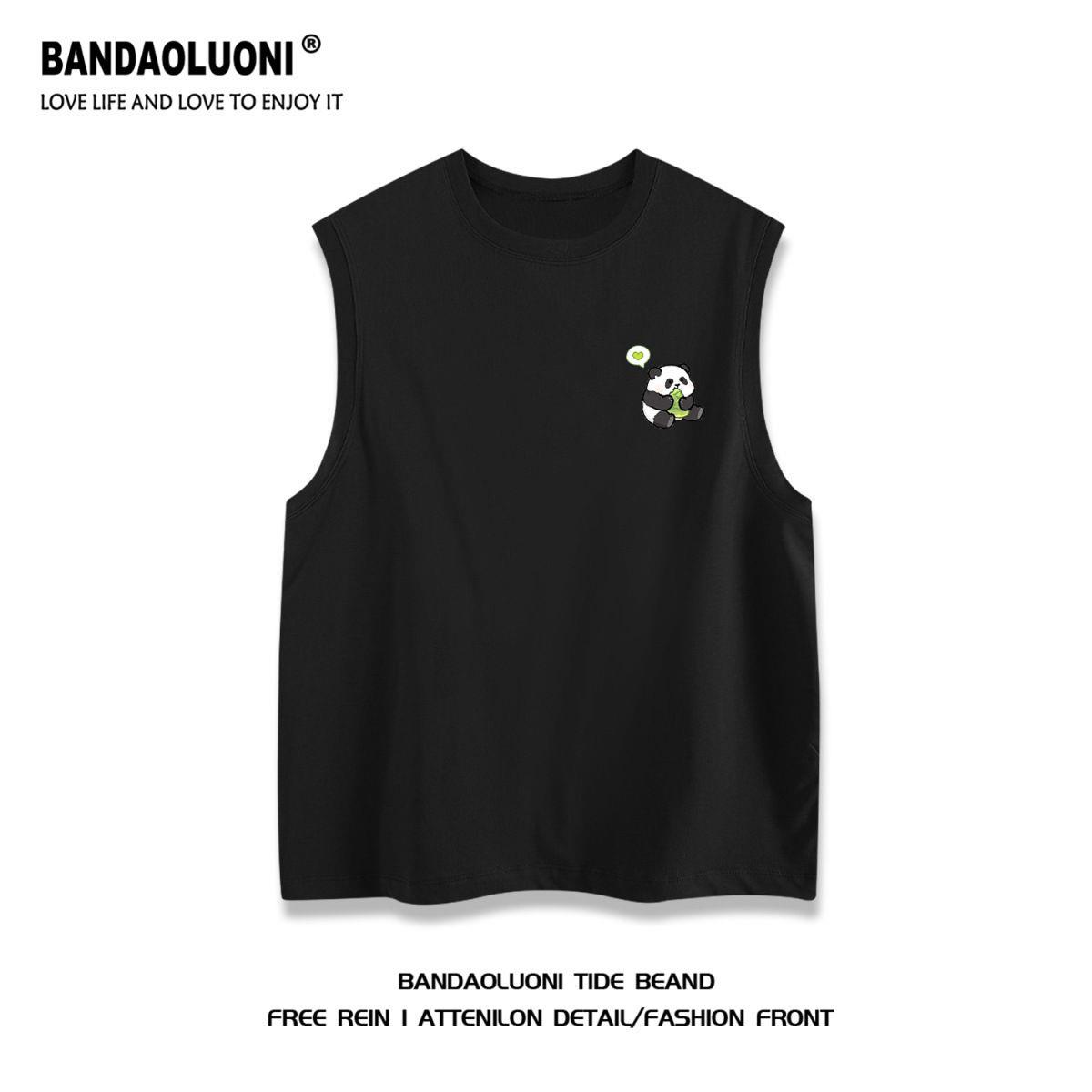【拍一发三!三件到手仅需59.9米!国潮夏季无袖坎肩!】国潮牌小众设计感趣味卡通熊猫印花无袖坎肩t恤男夏季新款背心-24XPXH07