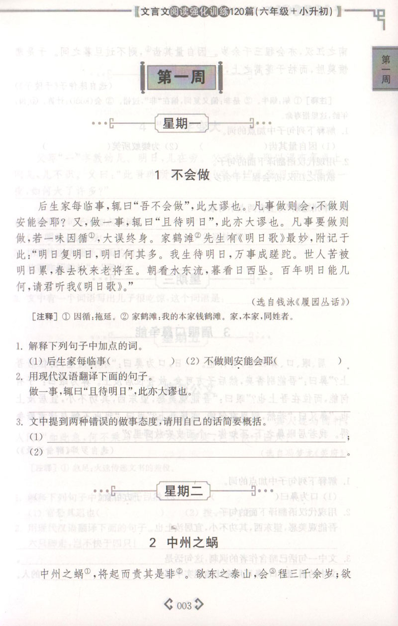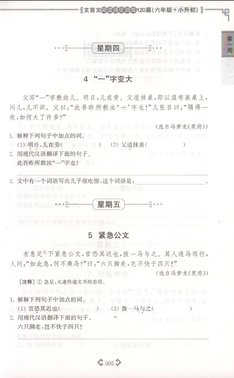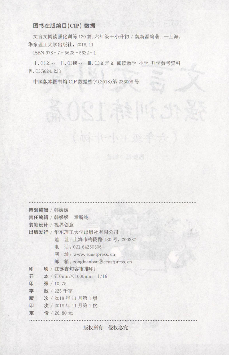 正版 文言文阅读强化训练120篇 6年级/六年级+小升初 每日10分钟 文言文衔接很轻松 丰富多样的阅读素材 新颖全面的热点题型