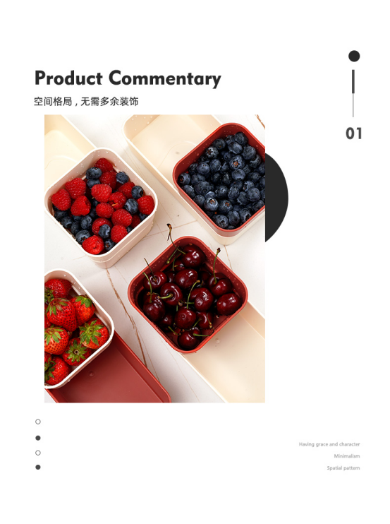 不仅有颜值,做工也用心镂空沥水设计——加高镂空沥水, 沥干多余水分圆润边角处理——圆润边角无毛刺, 不怕划伤手底部加高防滑——防滑底座,放置稳固,不滑动