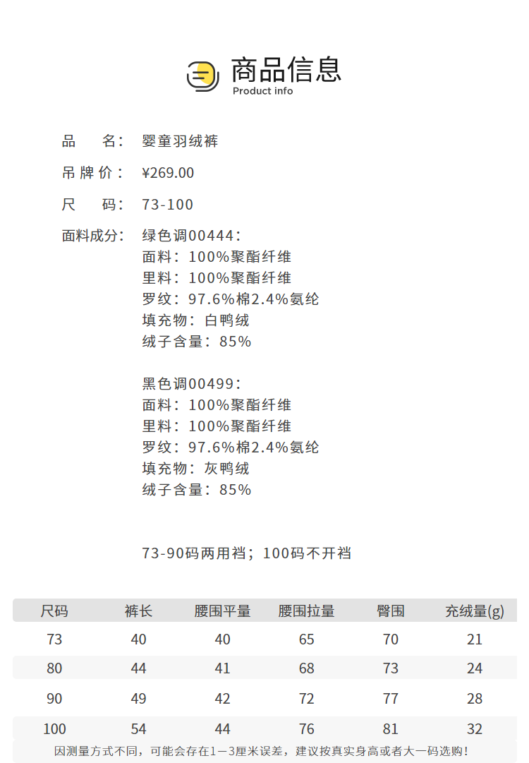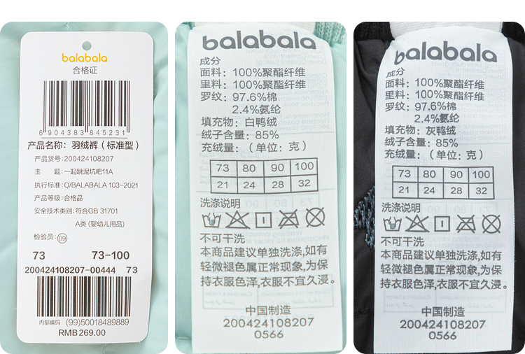 巴拉巴拉童装儿童羽绒裤男女童长裤宝宝裤子舒适保暖时尚洋气潮酷