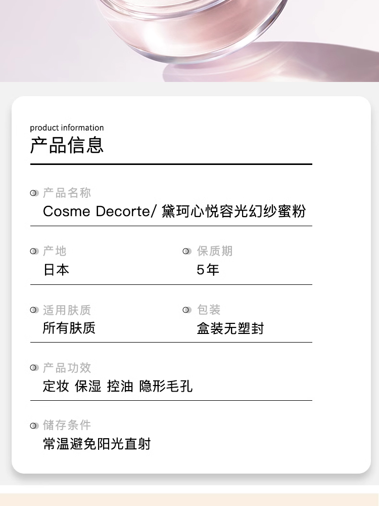 【跨境】CosmeDecorte黛珂 调光师散粉20g/盒 #00 透光型 #101 柔光型(效期27年)