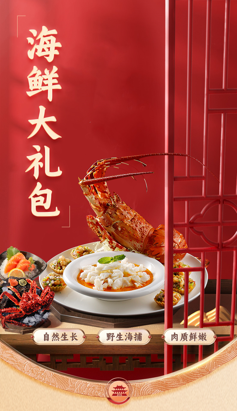 晟俐甄选 澳洲鲜活速冻龙虾 智利帝王蟹 海鲜全家福新年礼盒