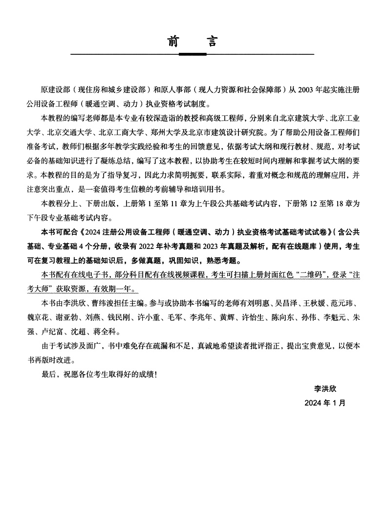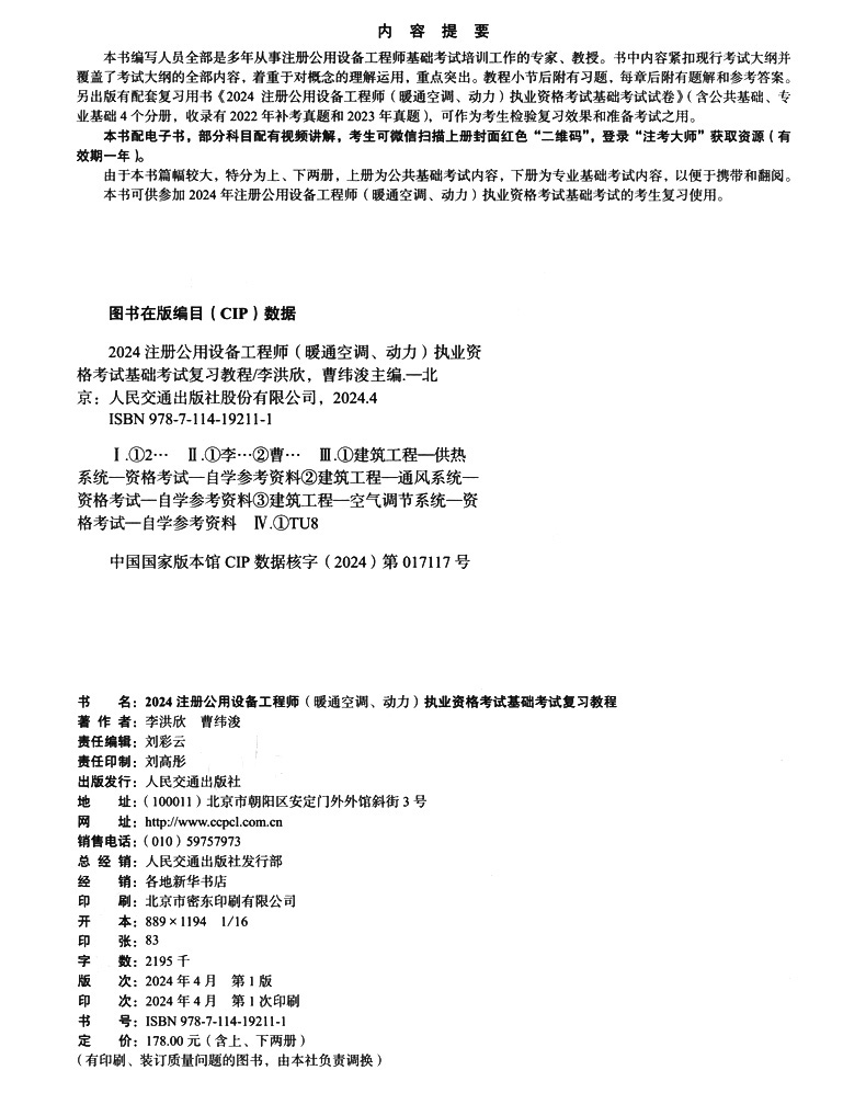 书名:2024注册公用设备工程师(暖通空调、动力)执业资格考试基础考试复习教程