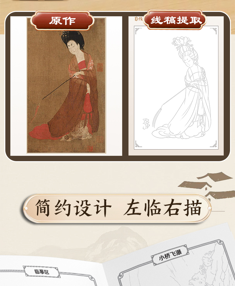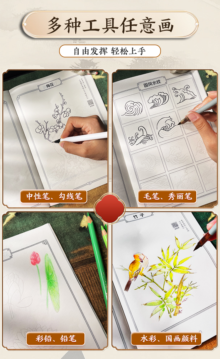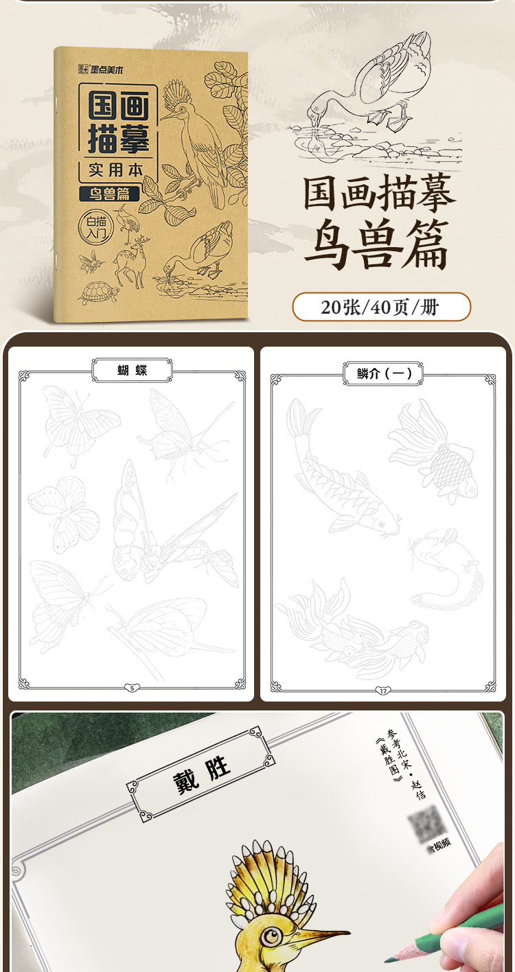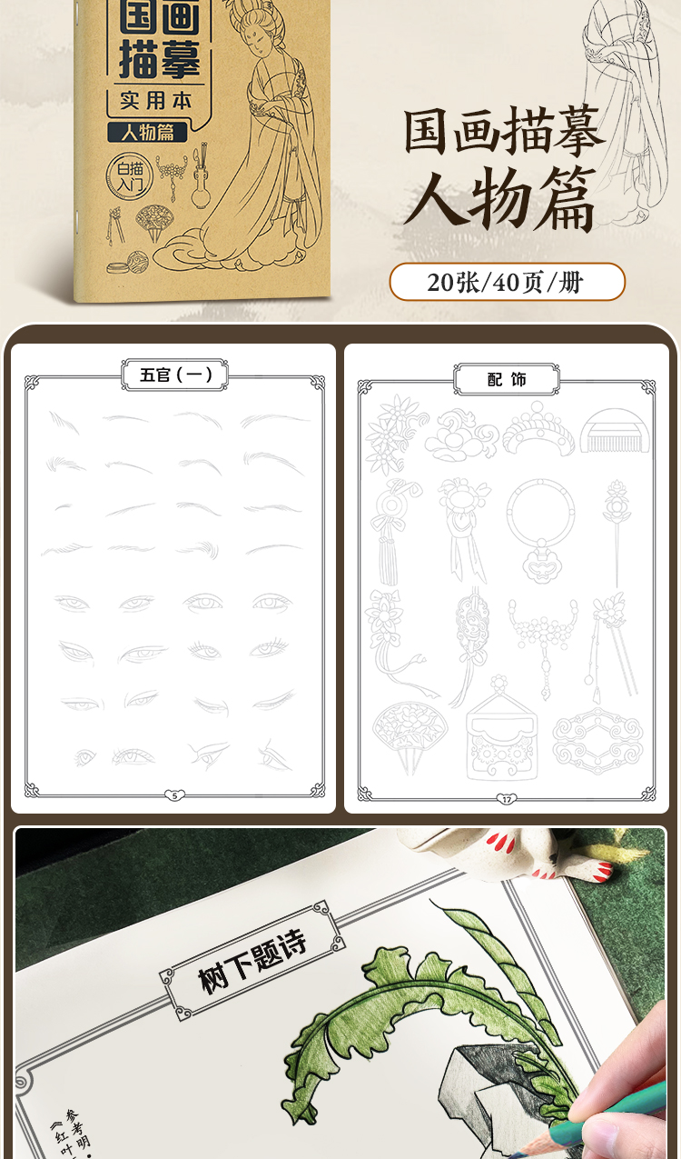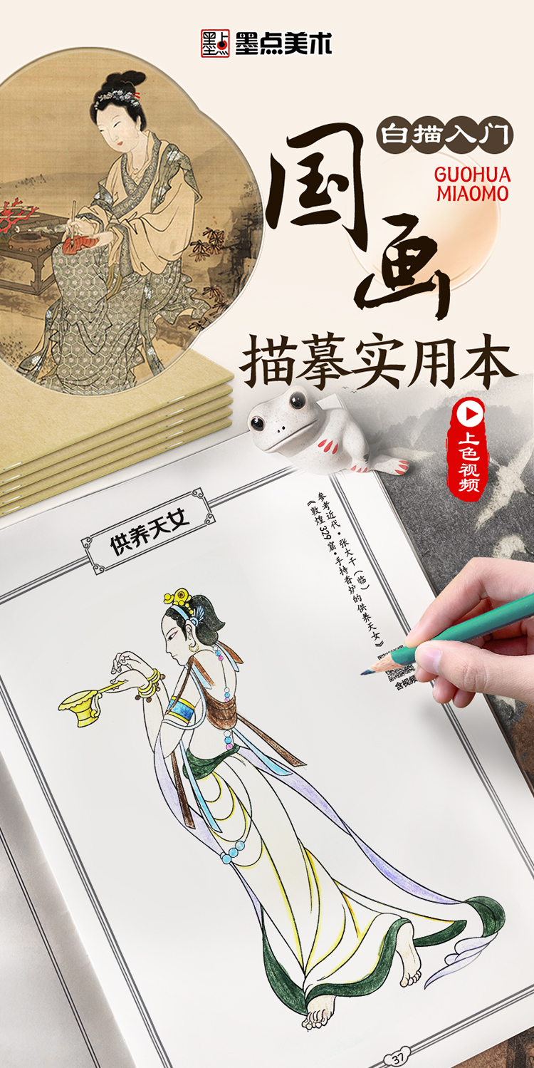 墨点美术 国画描摹实用本 白描入门描摹本国画工笔国风山水花卉鸟人物美术套装画本描红书初学者画画临摹画册毛笔绘画练习