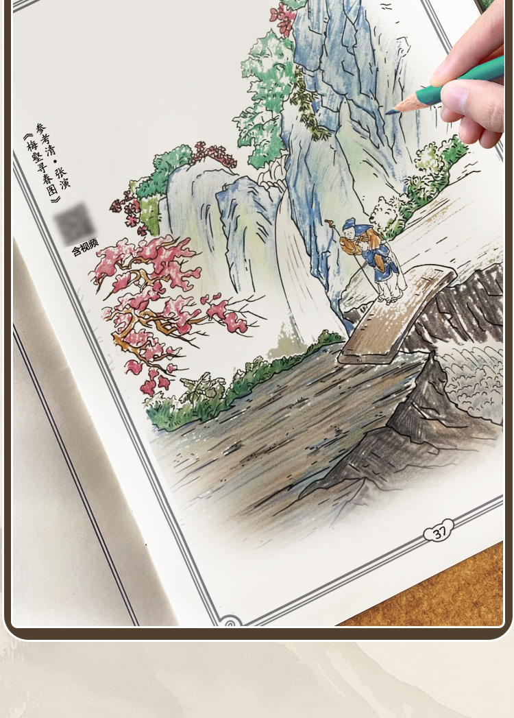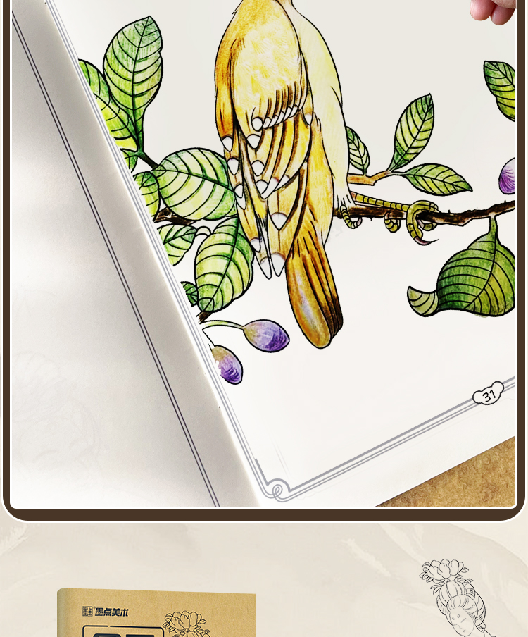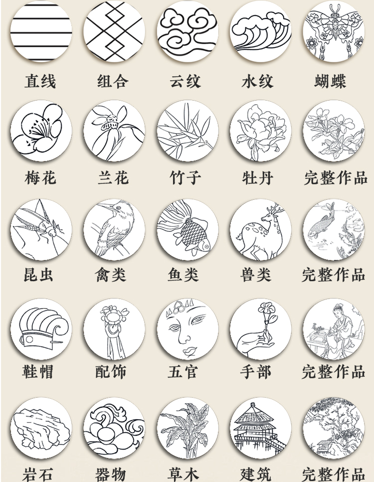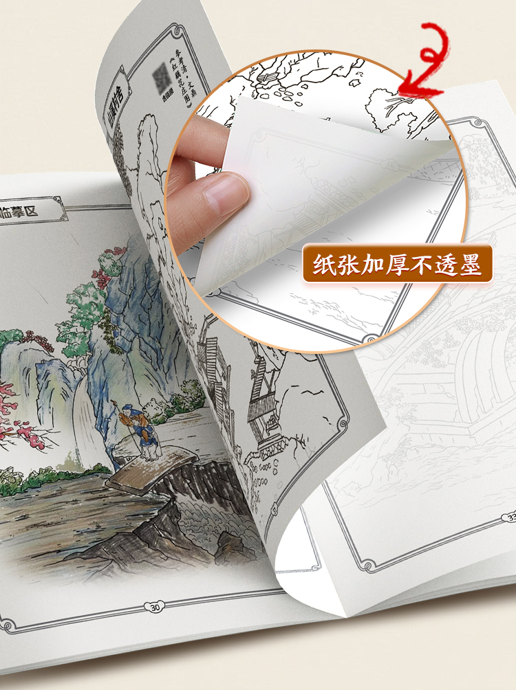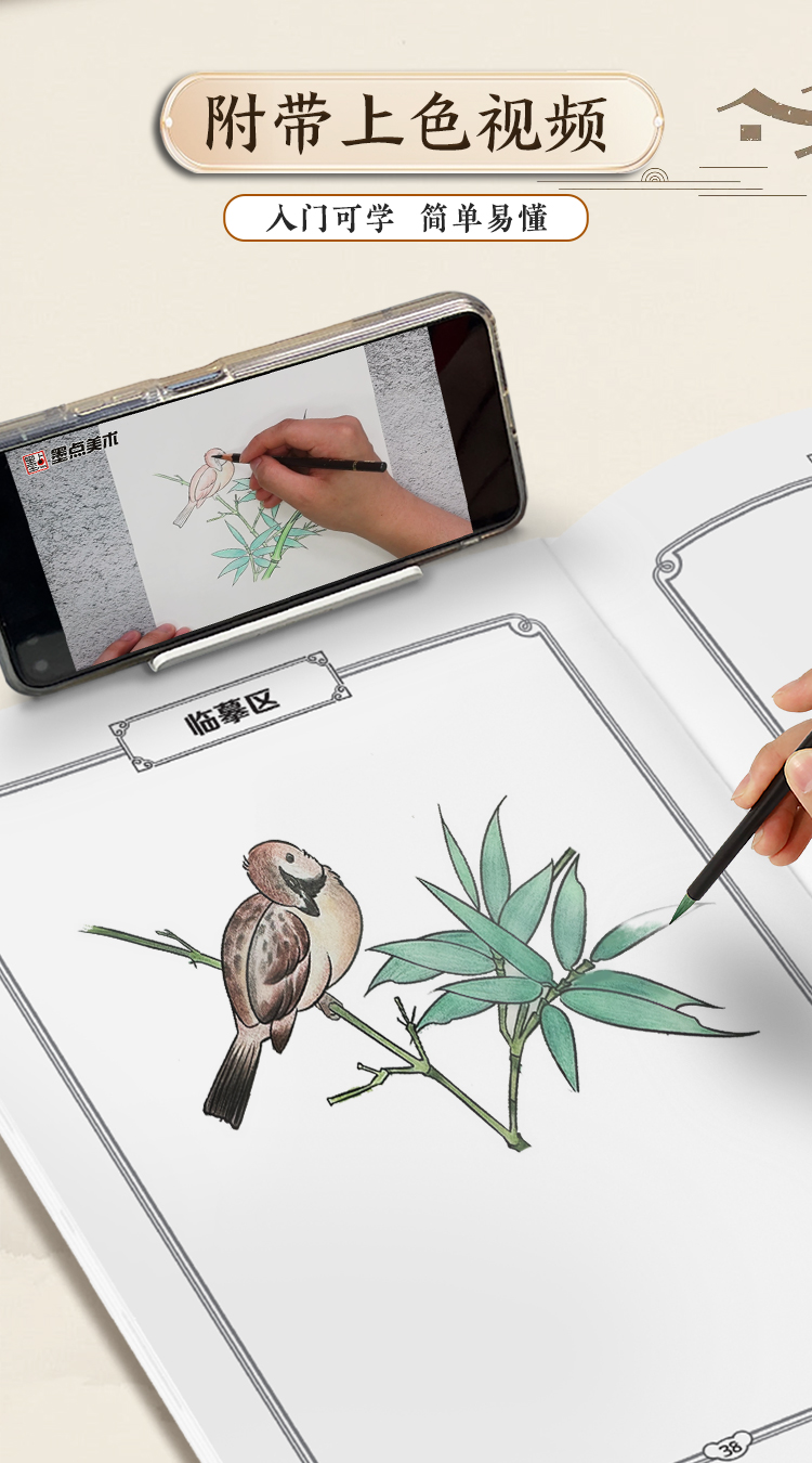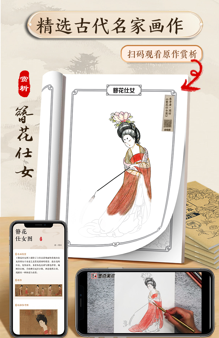墨点美术 国画描摹实用本 白描入门描摹本国画工笔国风山水花卉鸟人物美术套装画本描红书初学者画画临摹画册毛笔绘画练习