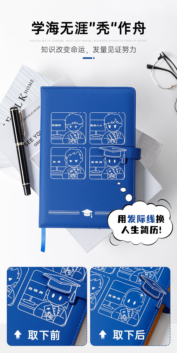 【实付满199送钥匙扣】【因公致秃大学生笔记本】PU材质记事本创意日记本