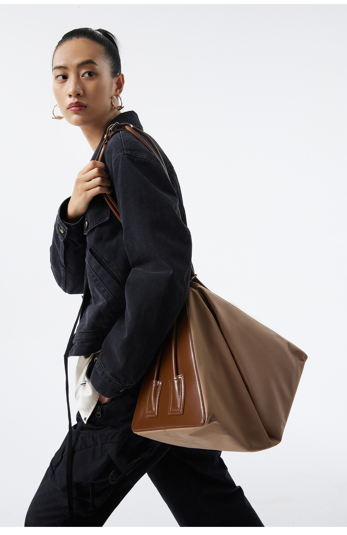 [福利价]lost in echo 环保尼龙布三角大号tote包大容量两用斜挎包手拎包