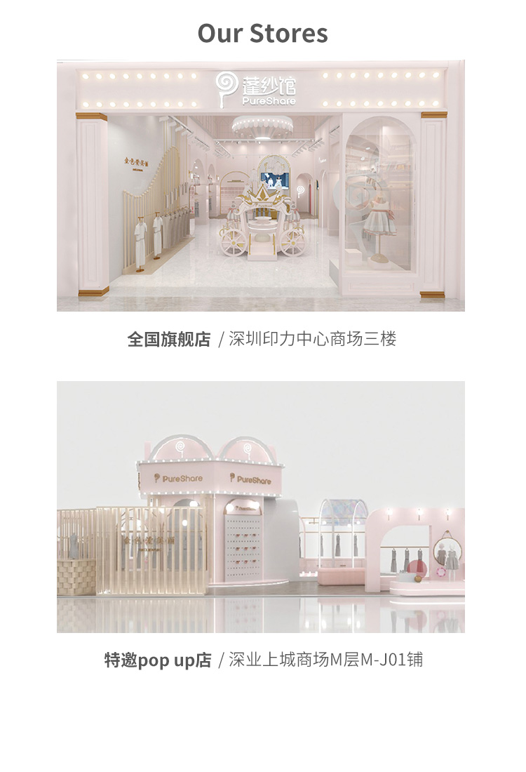 PureShare蓬纱馆,2018年创立的儿童服装品牌,专注于儿童轻奢生活类小礼服,主张“让孩子做最独特的自己”的品牌理念,为孩子们提供时尚简洁、优雅而又不失童真的生活类礼服。