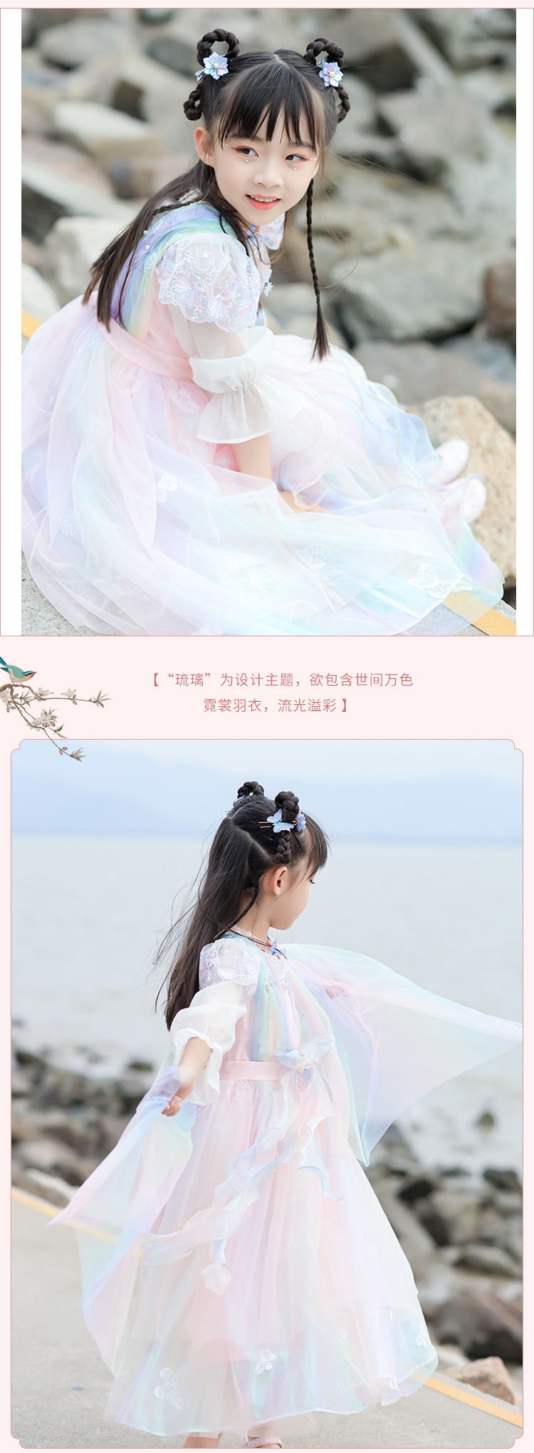 小嫒記春夏新款女童汉服国风中式时装周走秀款——霓裳齐腰襦裙