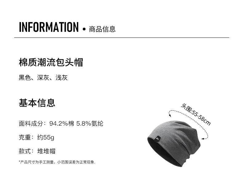 【YW】无忧购35元2件帽子男士秋冬季保暖薄款套头健身冷帽头巾棉睡帽大头围包头堆堆帽DMZ110(截单后3-5天发货)