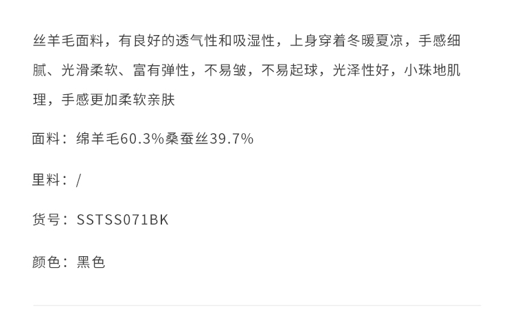 callisto黑色绵羊毛混纺T恤 SSTSS071H